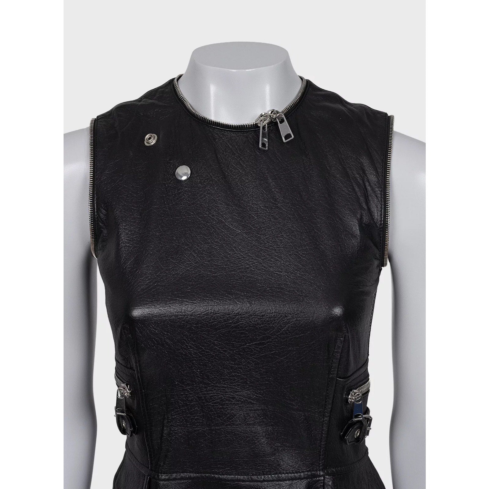 Alexander McQueen Black Leather Asymmetric Dress Sz.40 IT Pre-owned