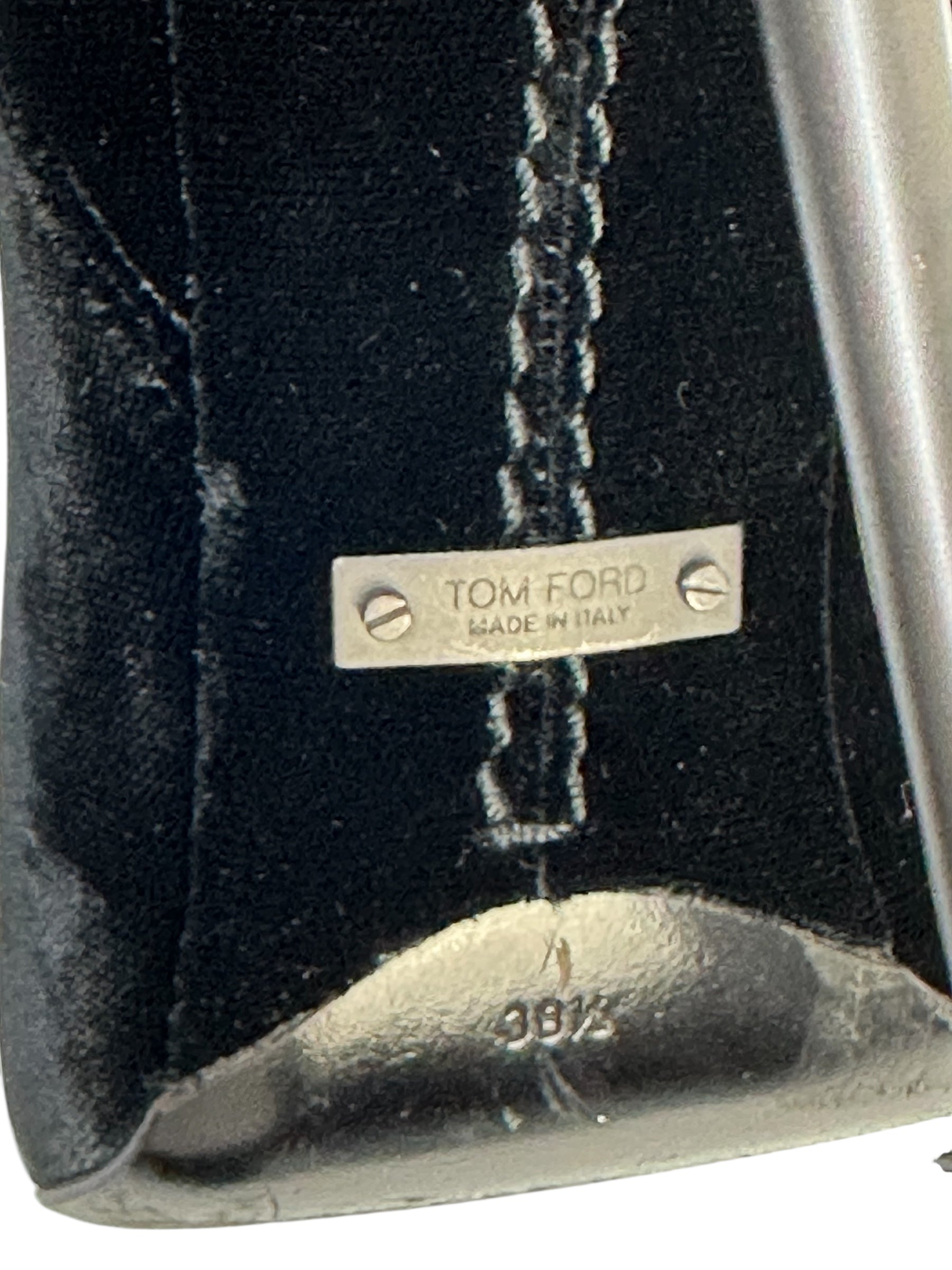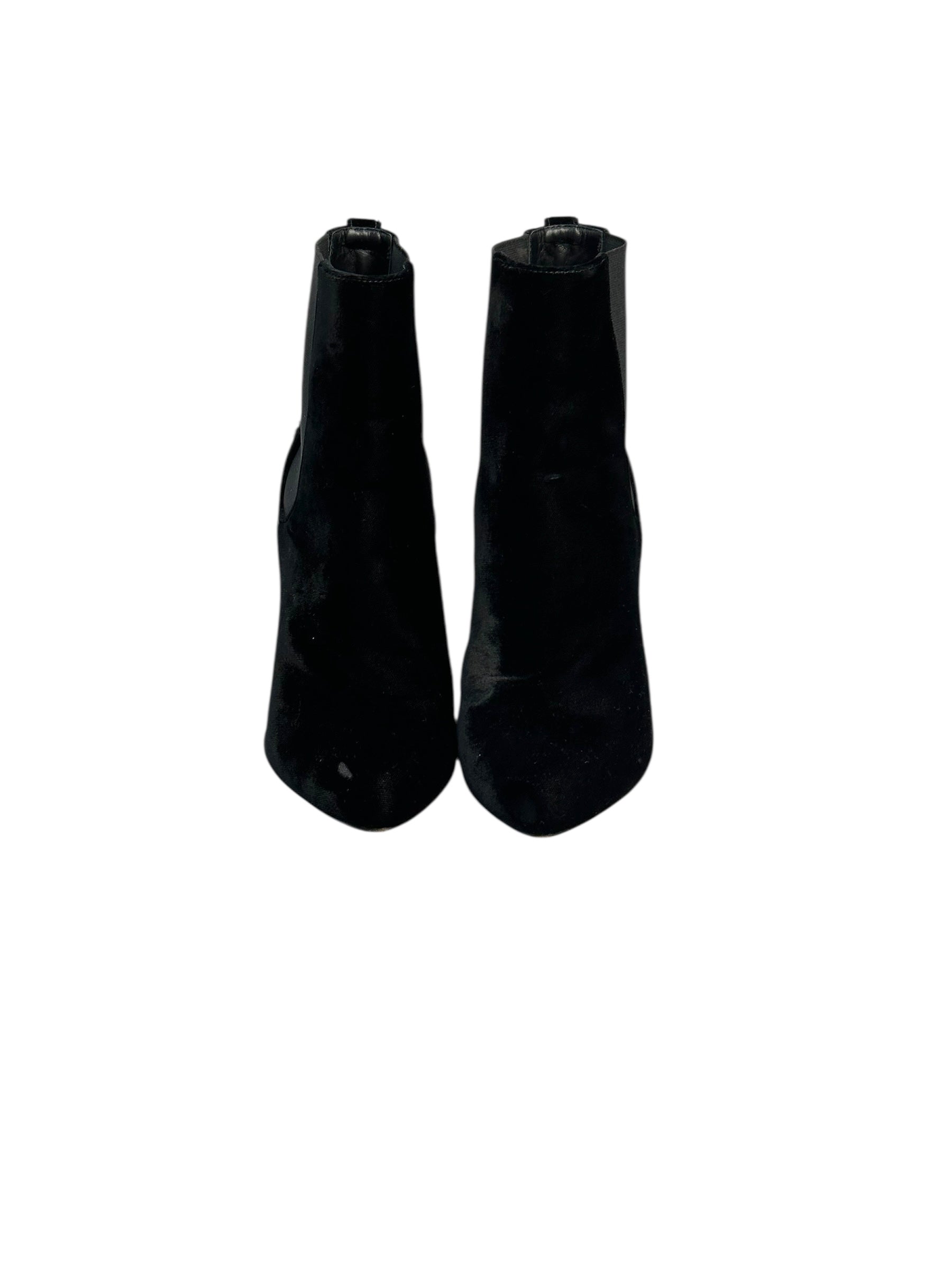 Elegant stiletto-heeled boots with minimalist silhouette and crystal-embellished logo. A refined statement piece that effortlessly transitions from day to night. Perfect for collectors and lovers of iconic footwear.