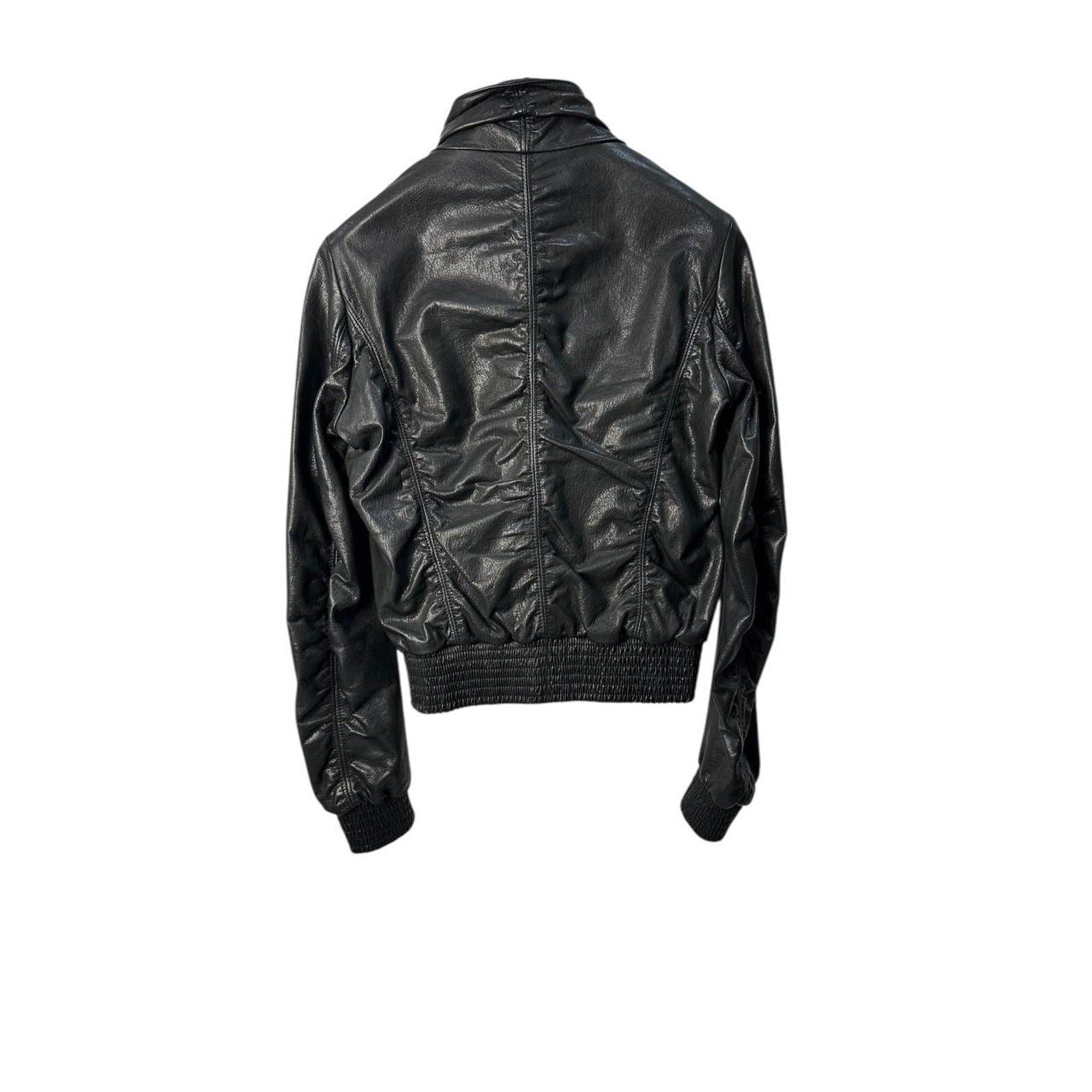 The deep black color enhances the rich texture of the leather. This jacket is in very good condition and ready to wear. Please note that a hanger is not included.