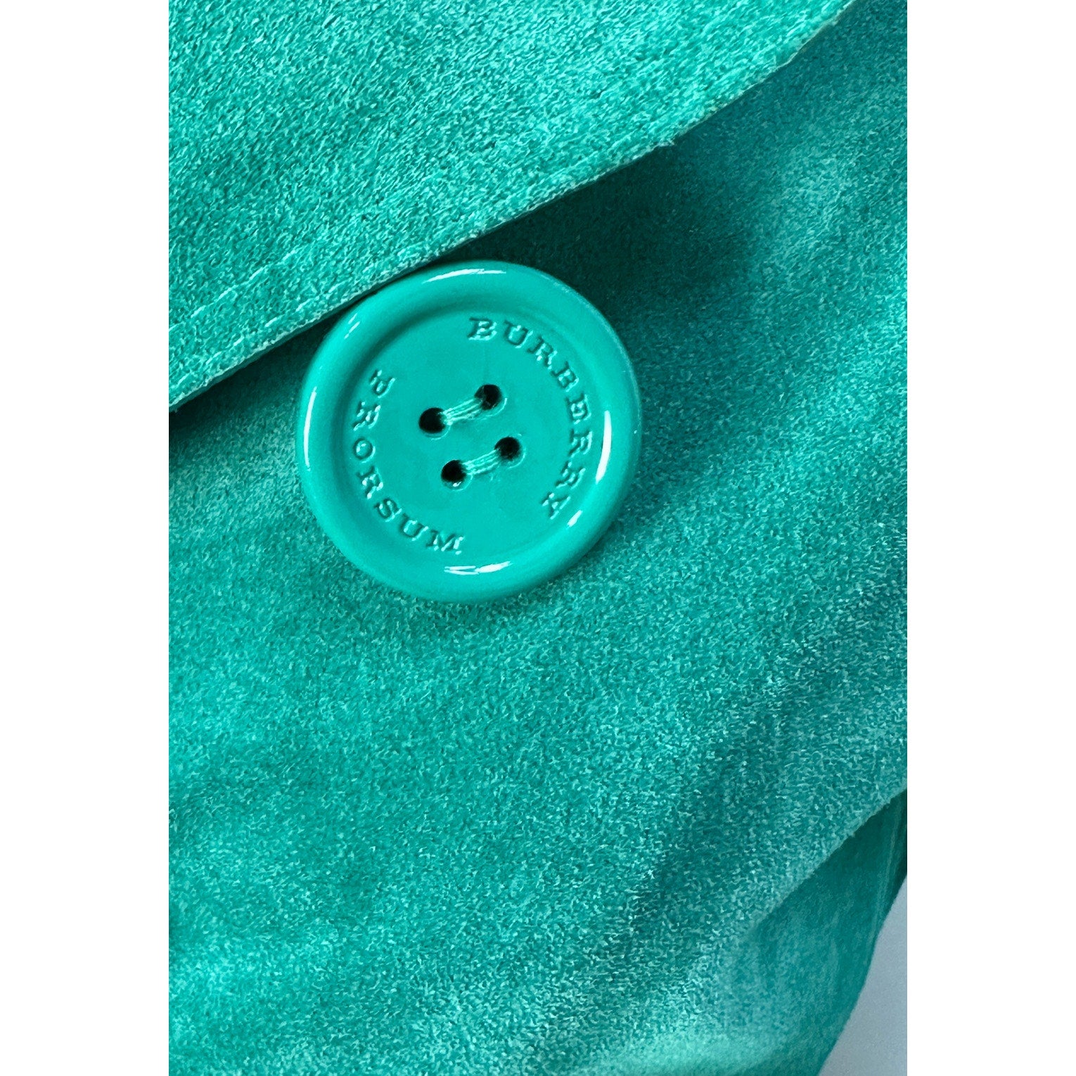 Step out in style with this stunning Burberry Prorsum Dégradé Suede Trench Coat! This teal ombré trench coat features luxurious suede, patent leather trim, and chic epaulettes.