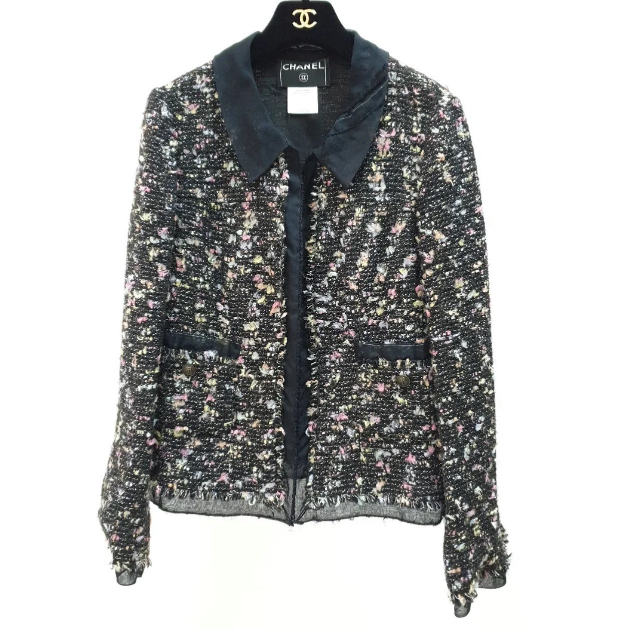 Chanel 04A Chiffon Trim Ribbon Tweed Dress Jacket Suit Sz.44 Pre-owned
