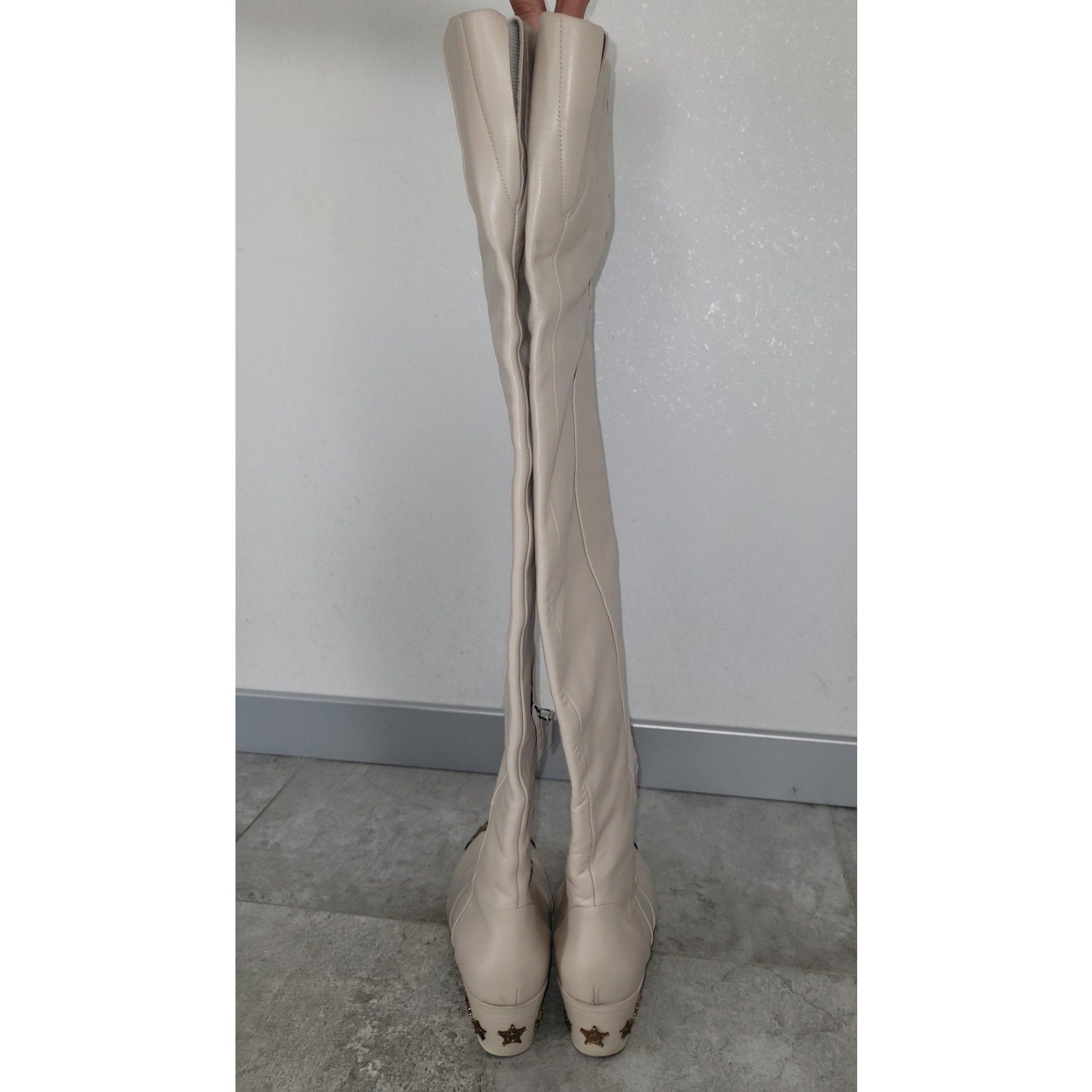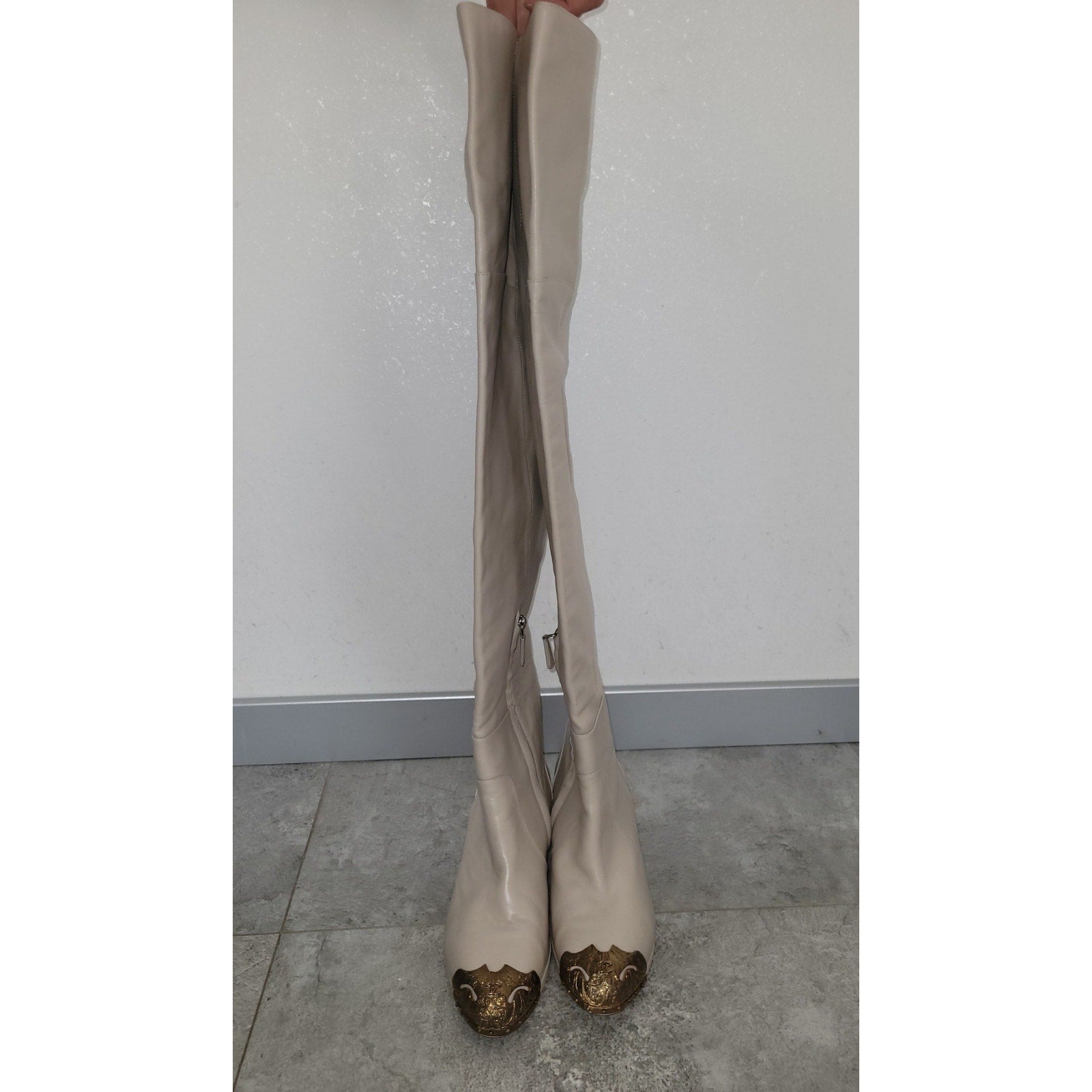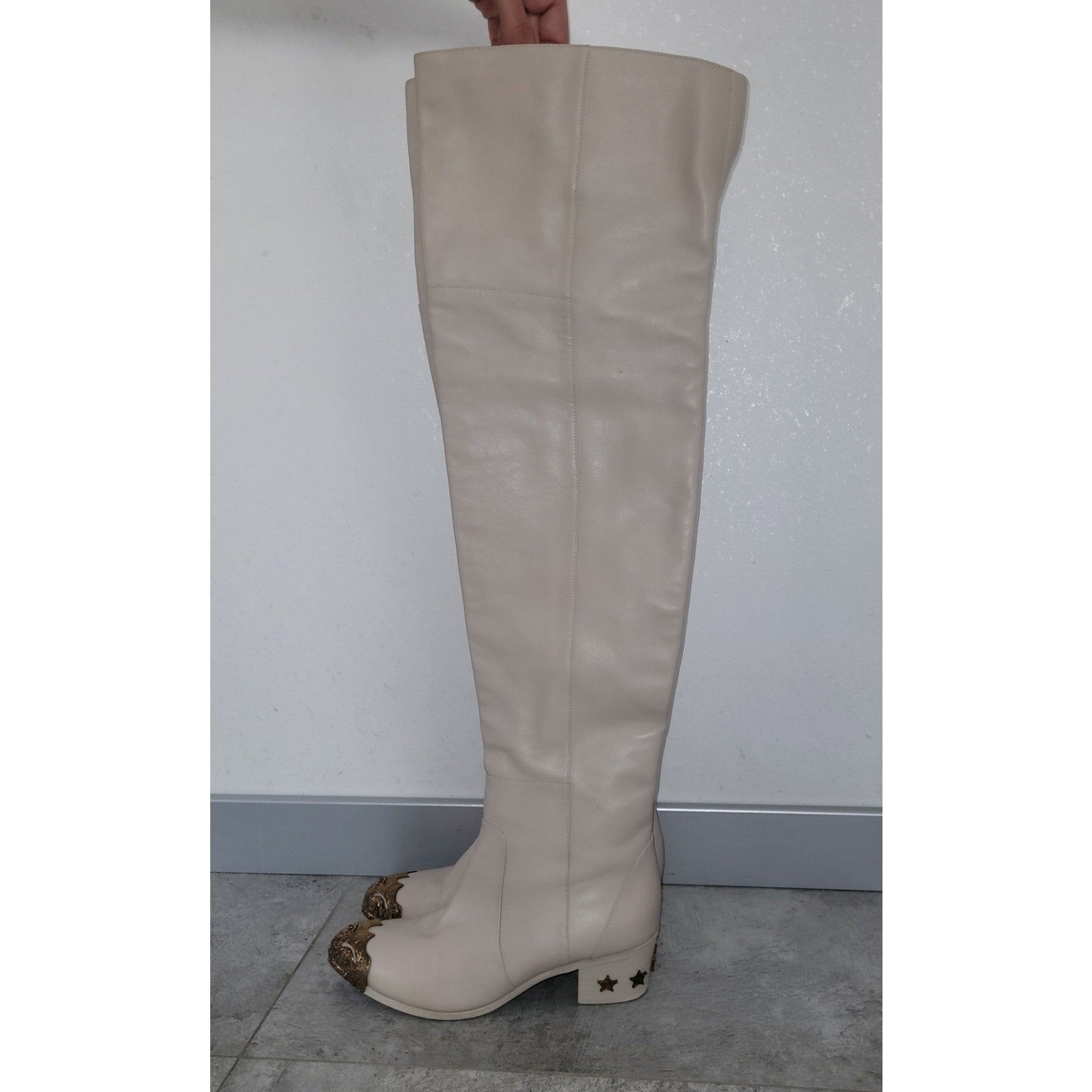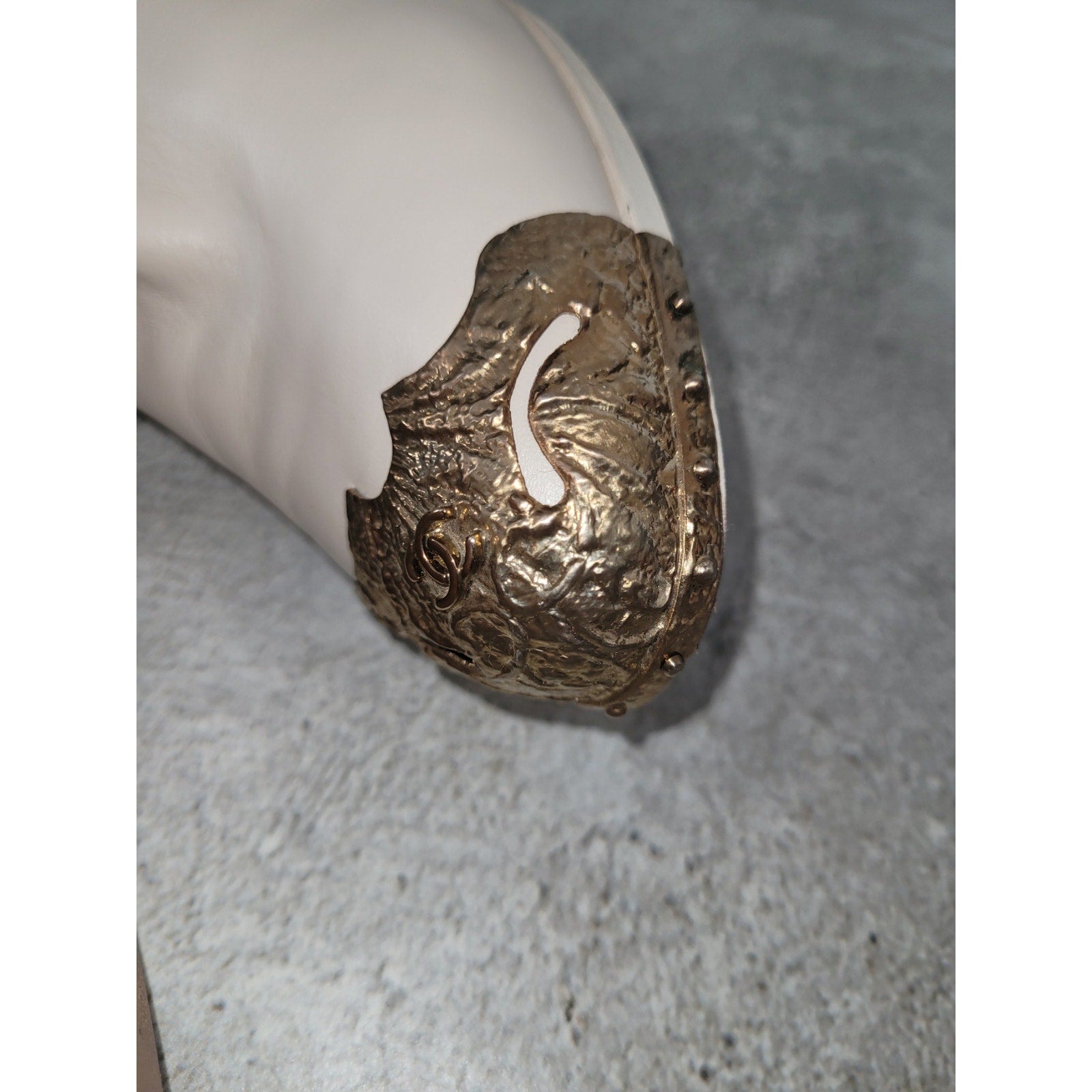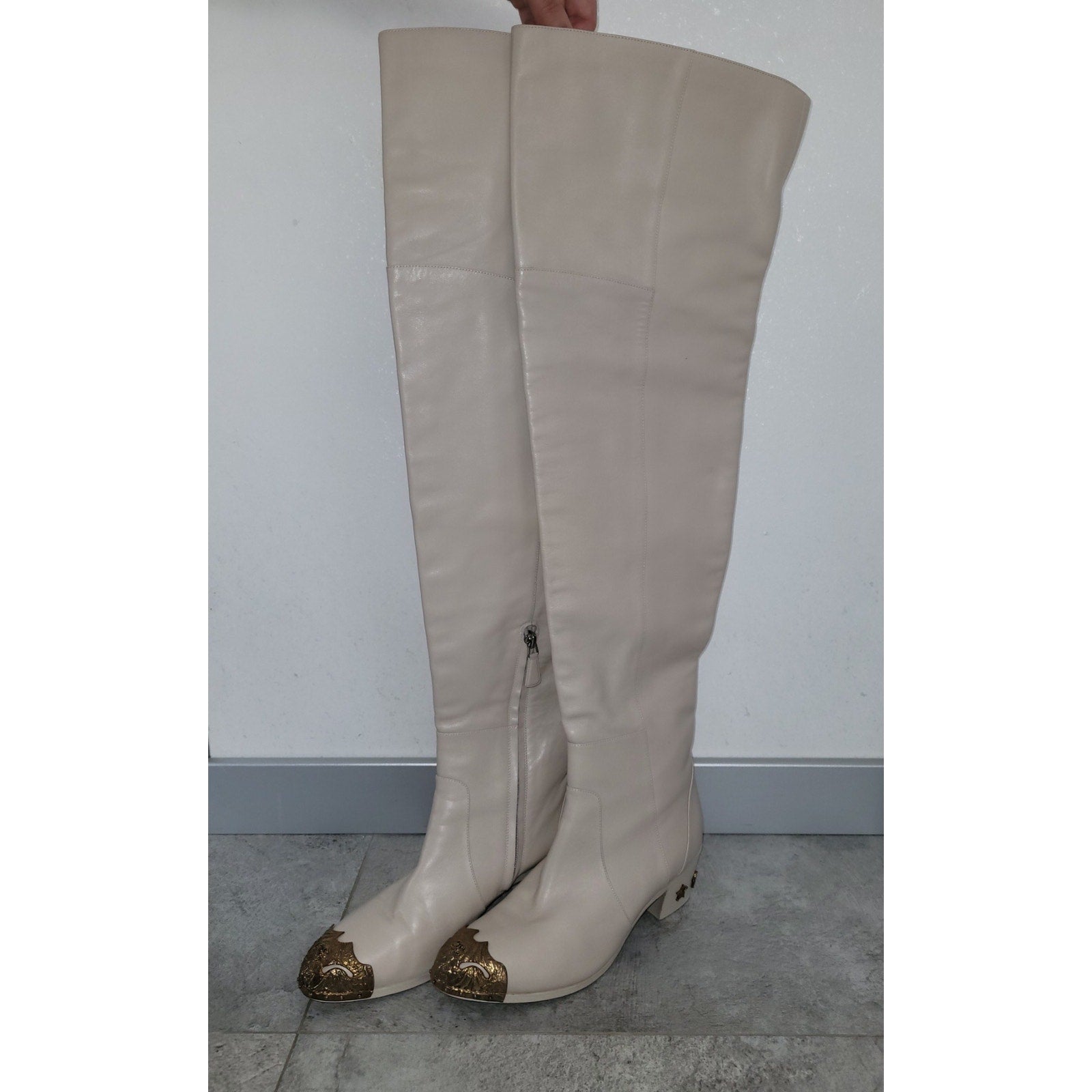 Chanel Beige Leather Paris Dallas Metal Cap Toe Thigh High Boots/Bootie Sz. 40 Pre-owned