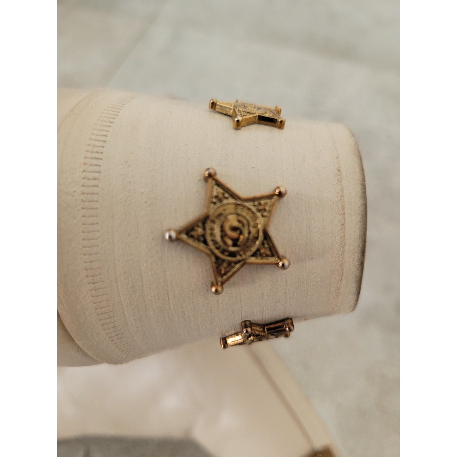 It is crafted from beige leather and designed with CC metal cap toes and stars decorated on the short heels.