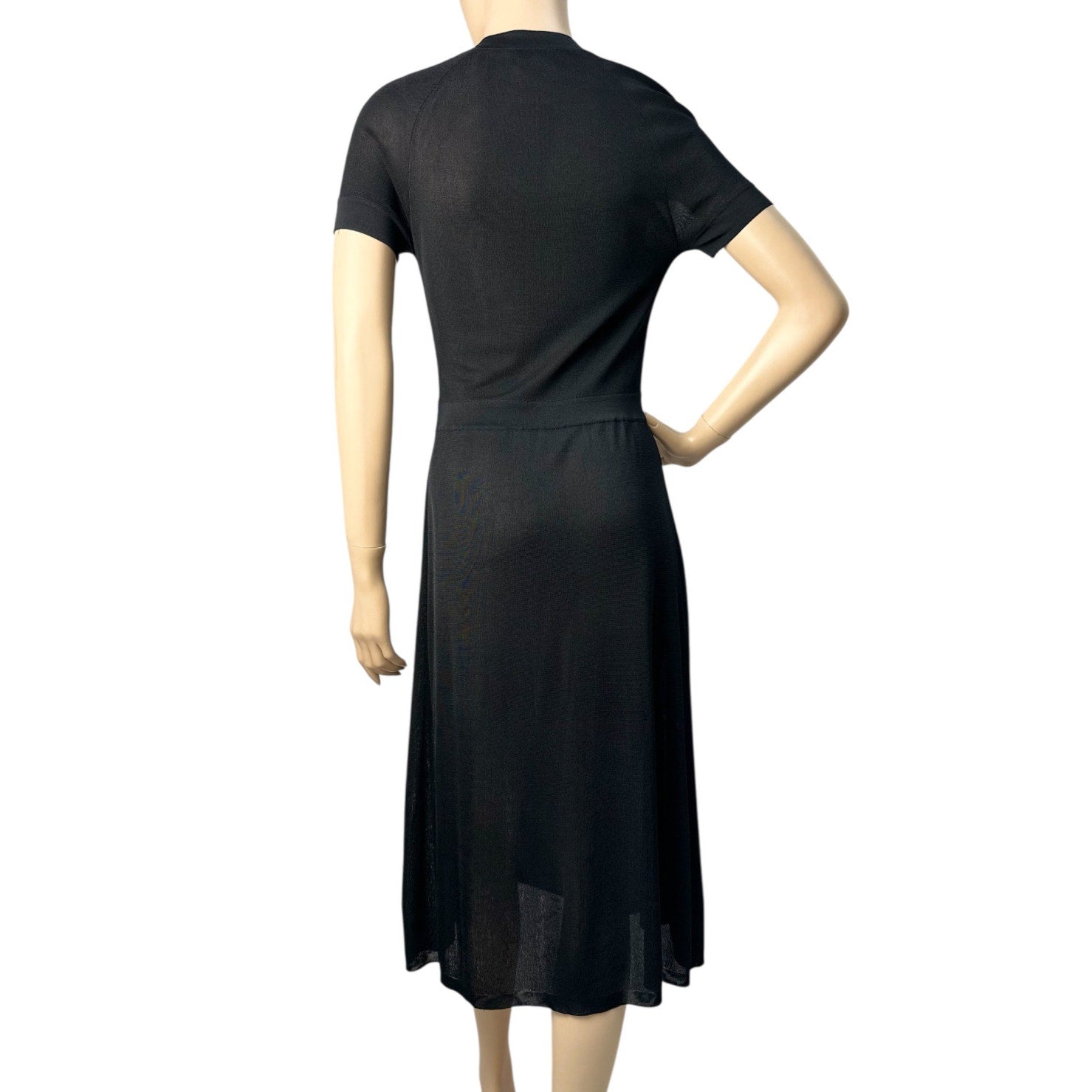 You are viewing a stunning Chanel black knitted midi dress in size 38. This dress is in very good condition and ready to make a statement in your wardrobe.