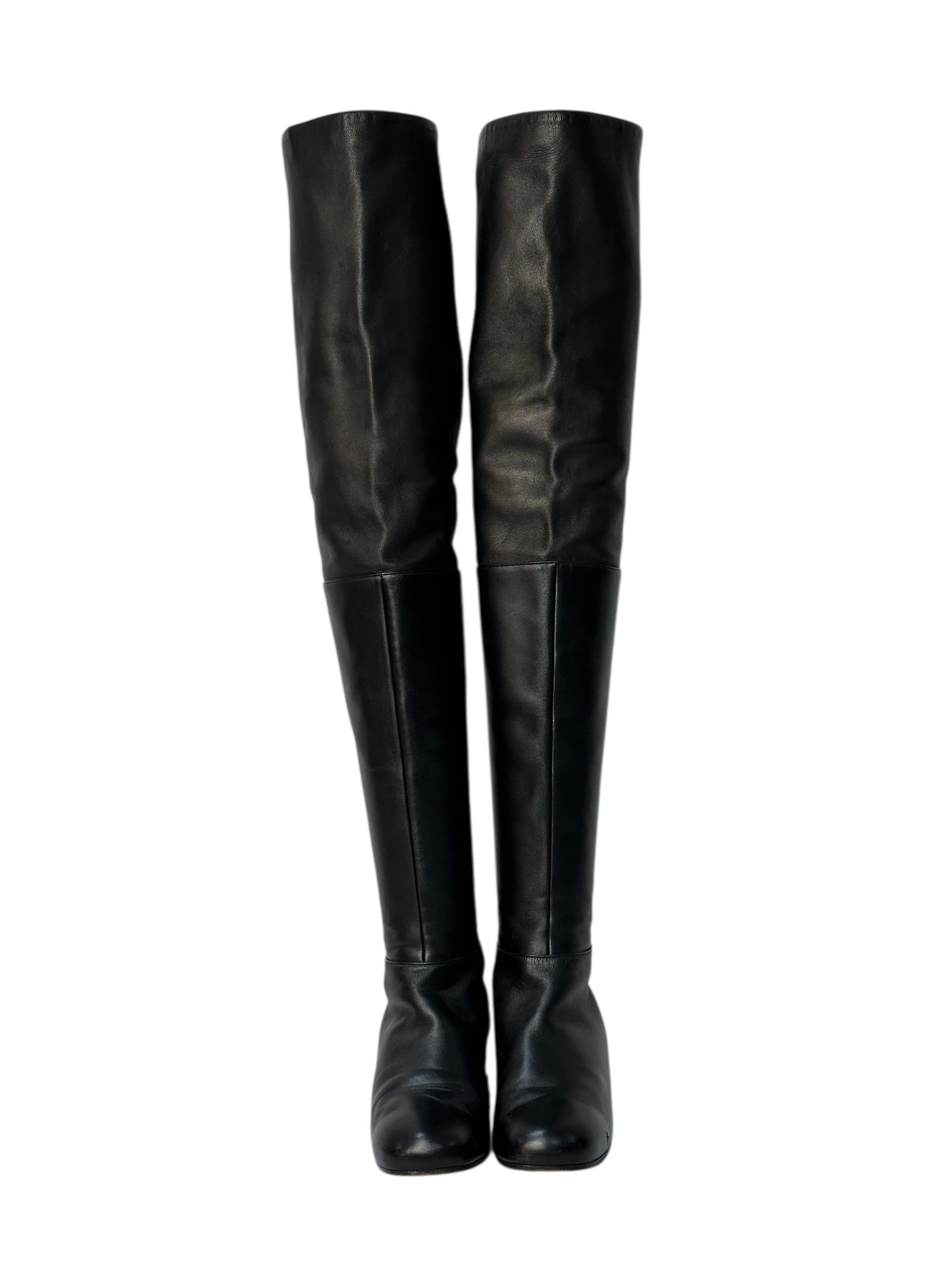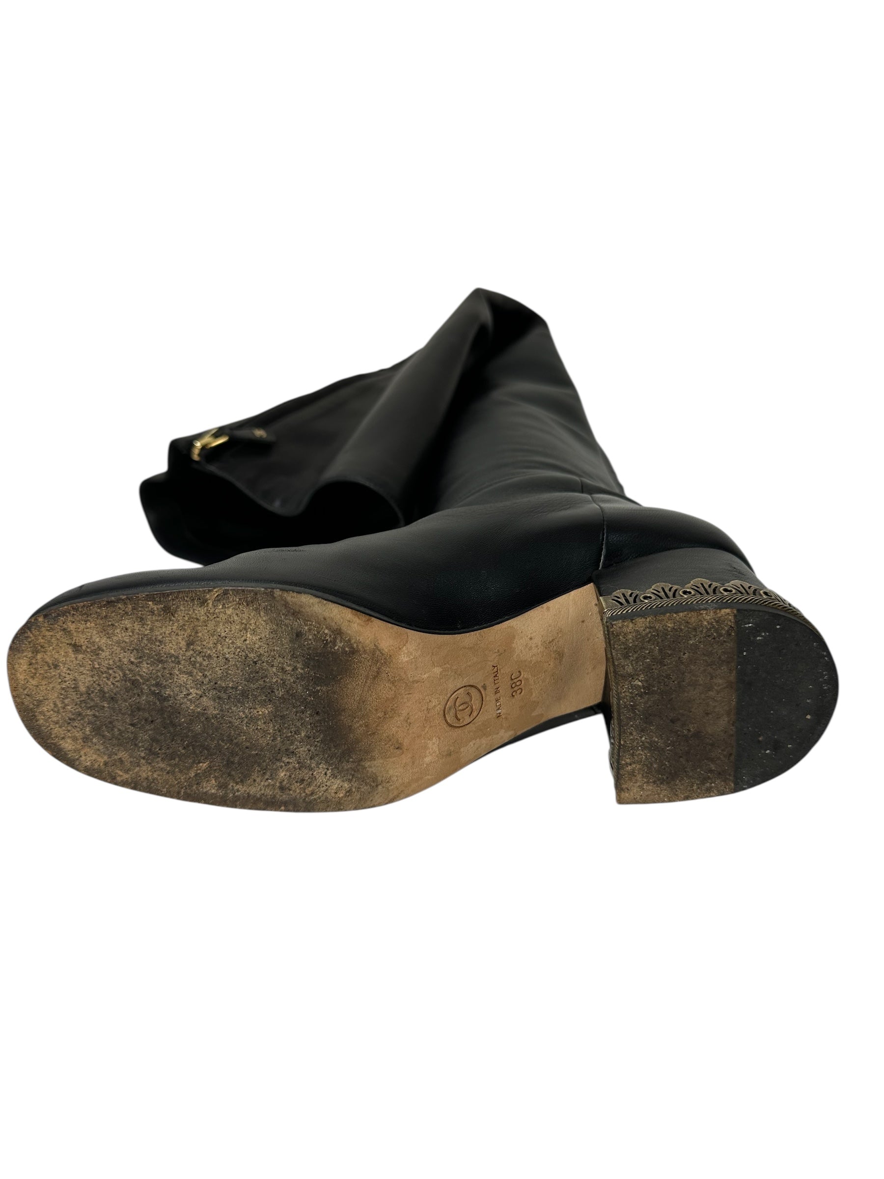 Timeless essentials with a touch of refinement. These knee-high black leather boots offer a sleek silhouette, rounded toe, and discreet decorative detail on the heel. Designed for comfort and elegance, they pair effortlessly with both structured coats and fluid dresses. A smart investment for the cold season, combining functionality with subtle luxury.