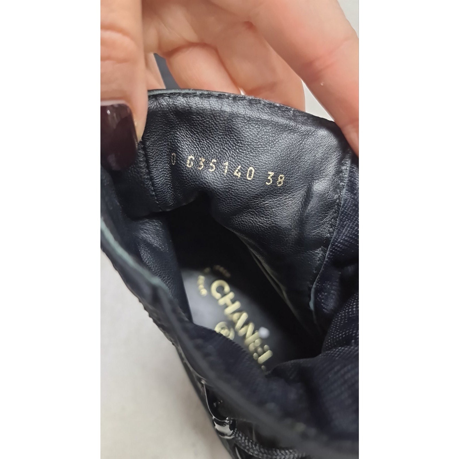 Chanel Black Rubber Nylon Ankle Boots CC Logo Size 38 Pre-owned
