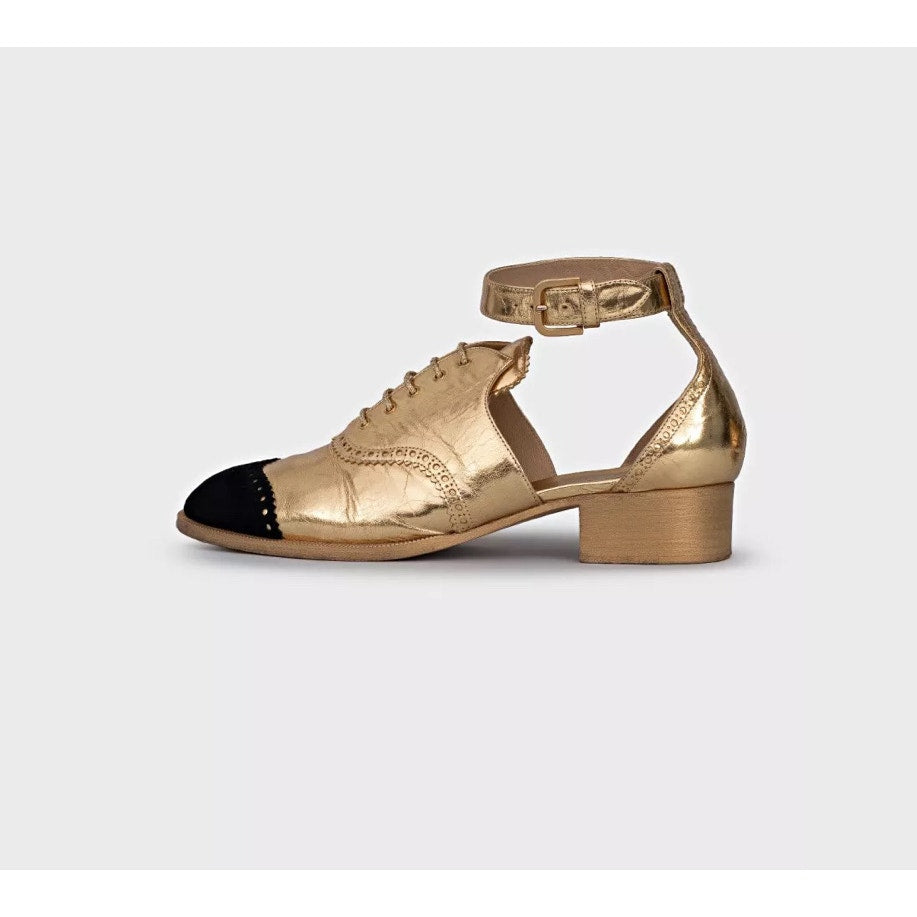 The iconic interlocking CC logo in gold-tone hardware adds a touch of classic Chanel elegance. These oxfords feature a comfortable round toe and a secure, adjustable lace-up closure. Perfect for adding a chic touch to both casual and dressy outfits.