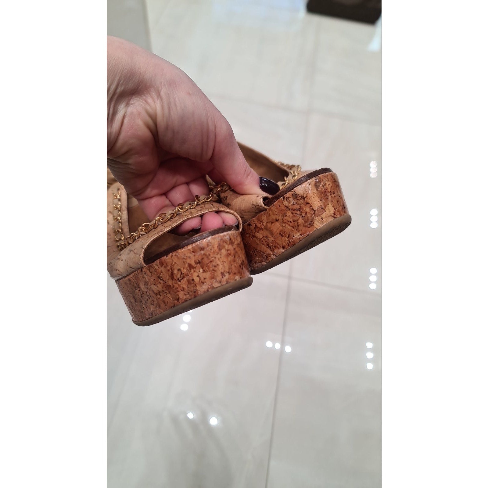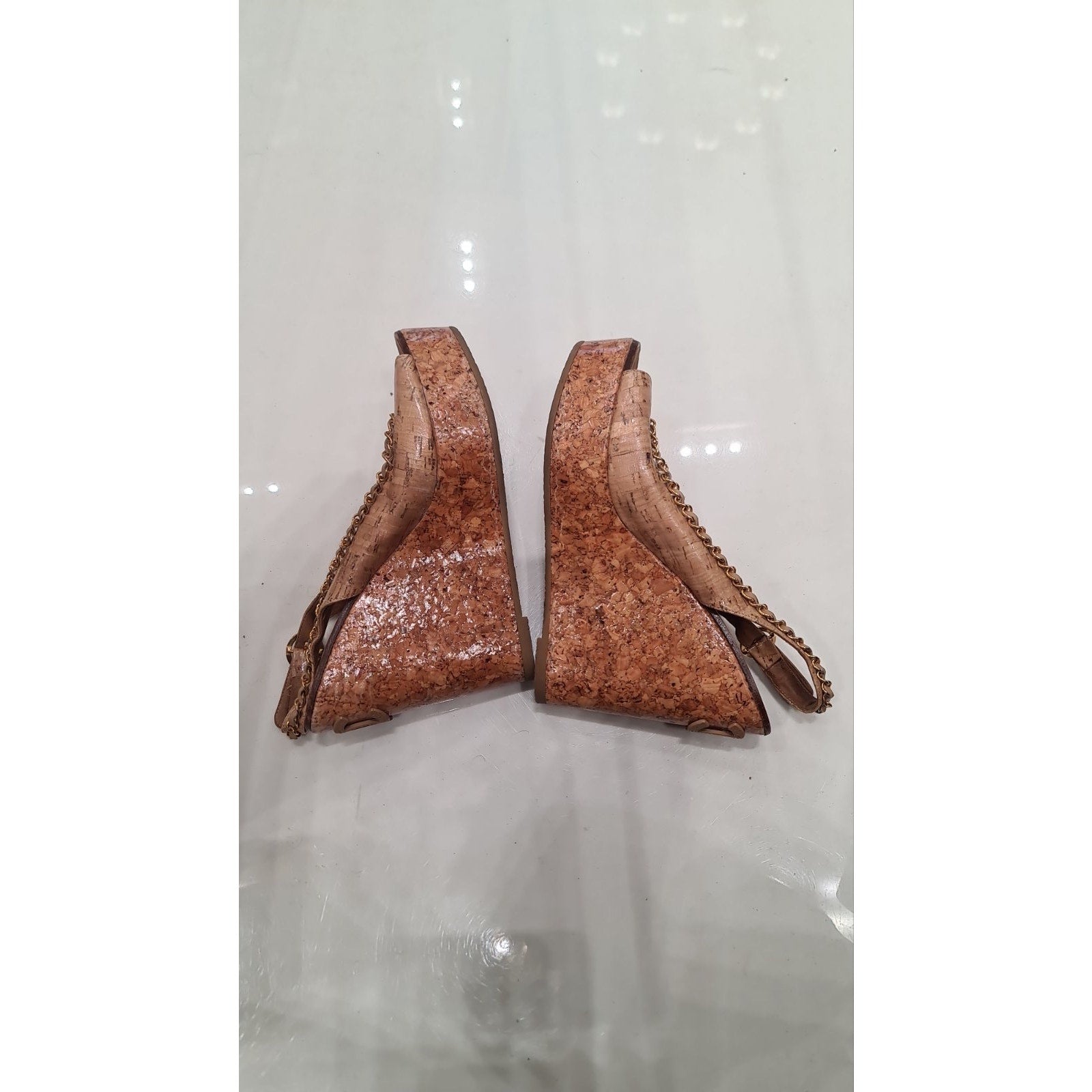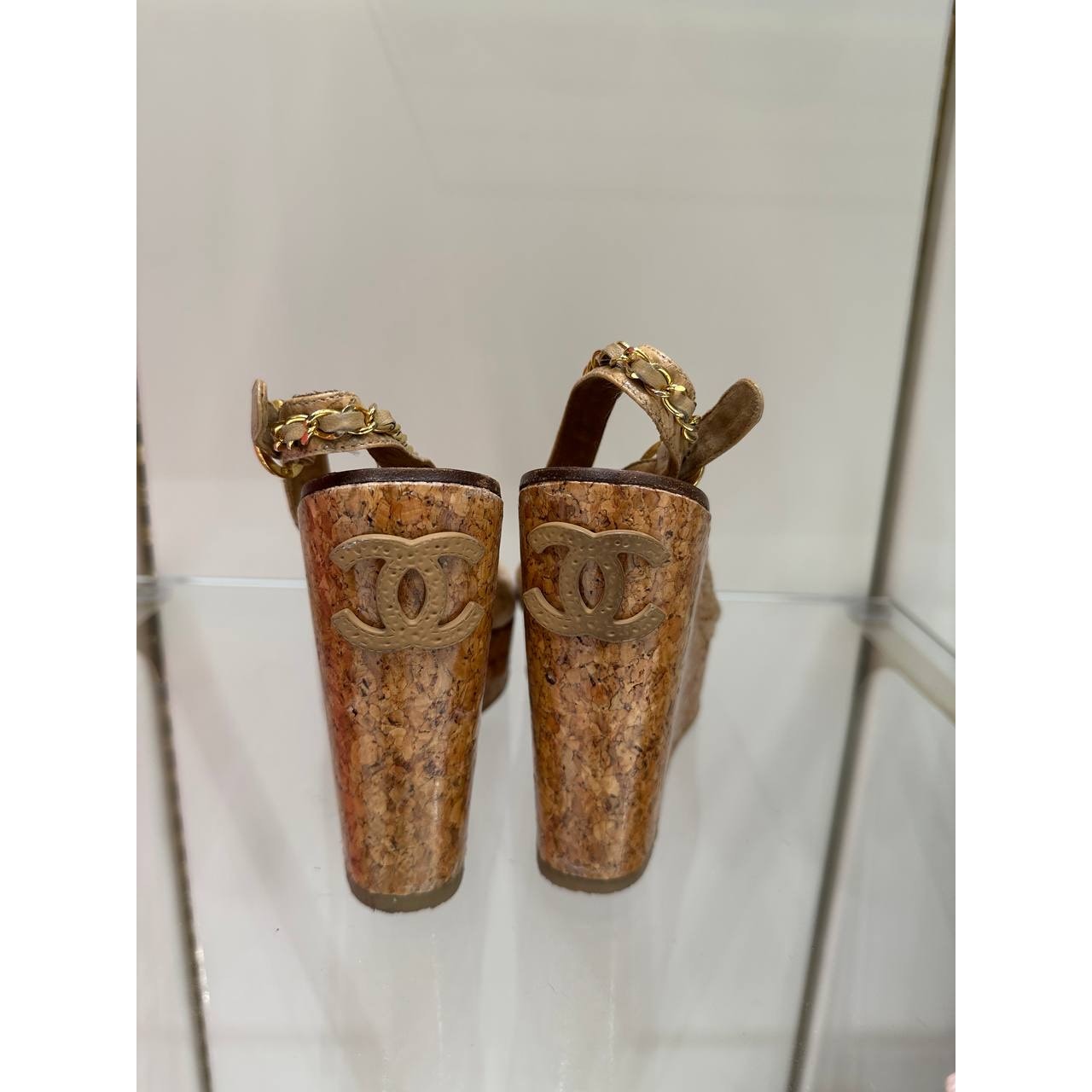 CHANEL – COCO Mark Chain Wedge Sandals