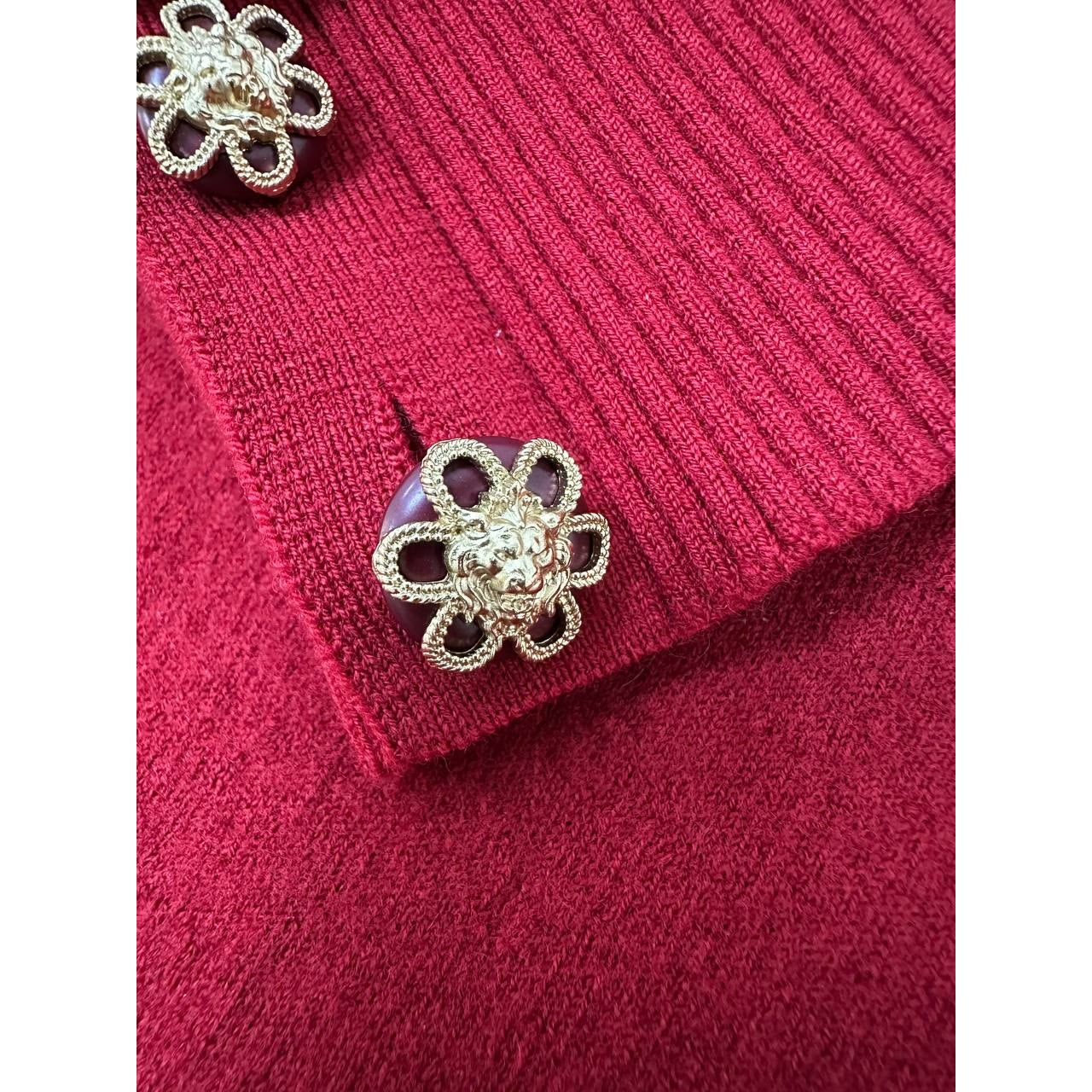 Elegant Chanel dark red cashmere turtleneck sweater, estimated to fit sizes S-M. Please note that the brand and size tag were cut, so please check the measurements to ensure a perfect fit. Features the iconic CC logo buttons, adding a touch of luxury to this classic piece. Hanger is not included.