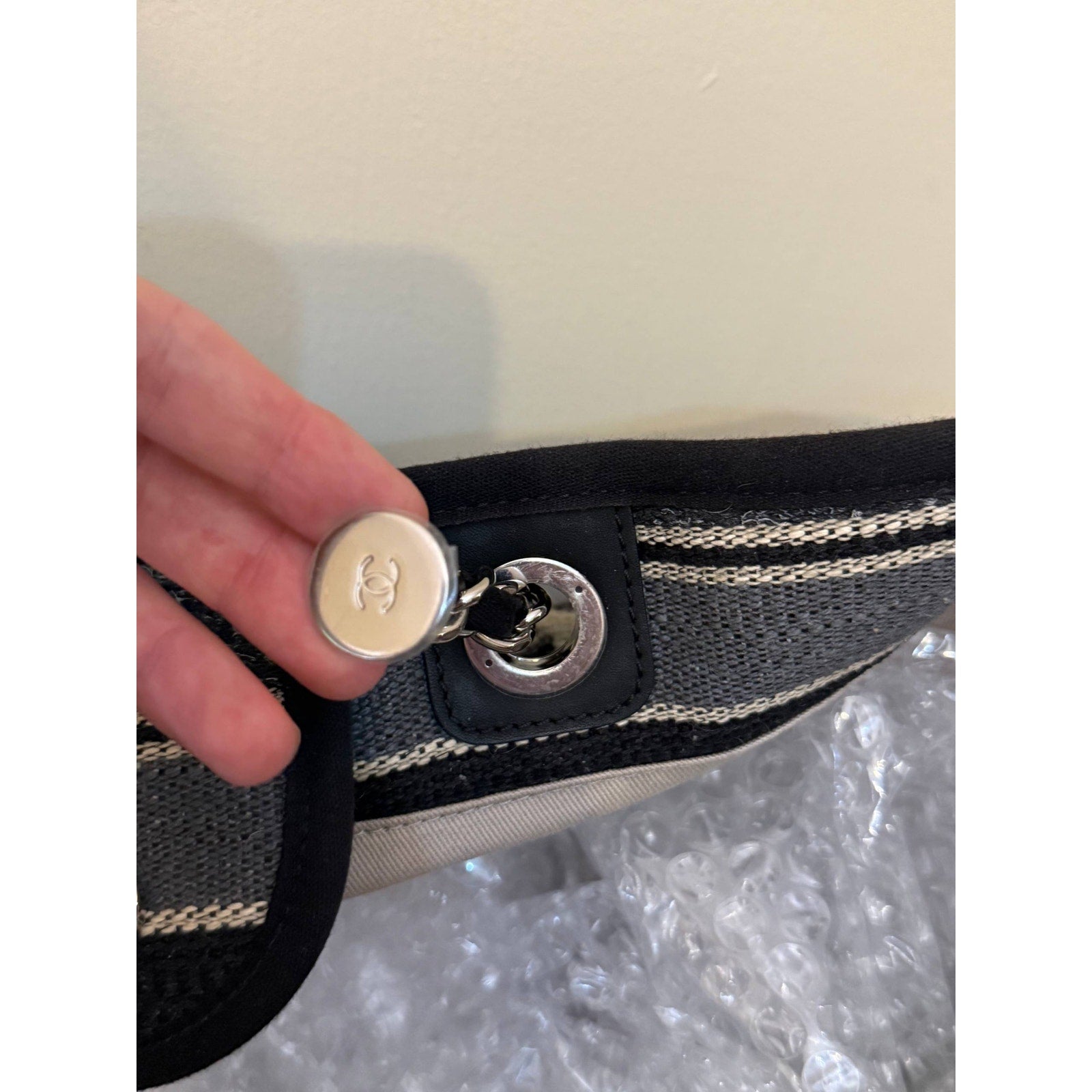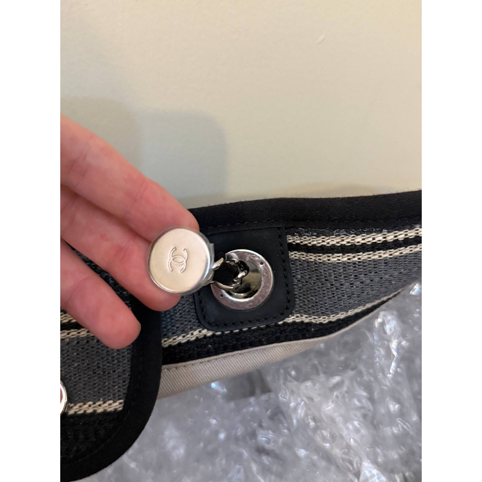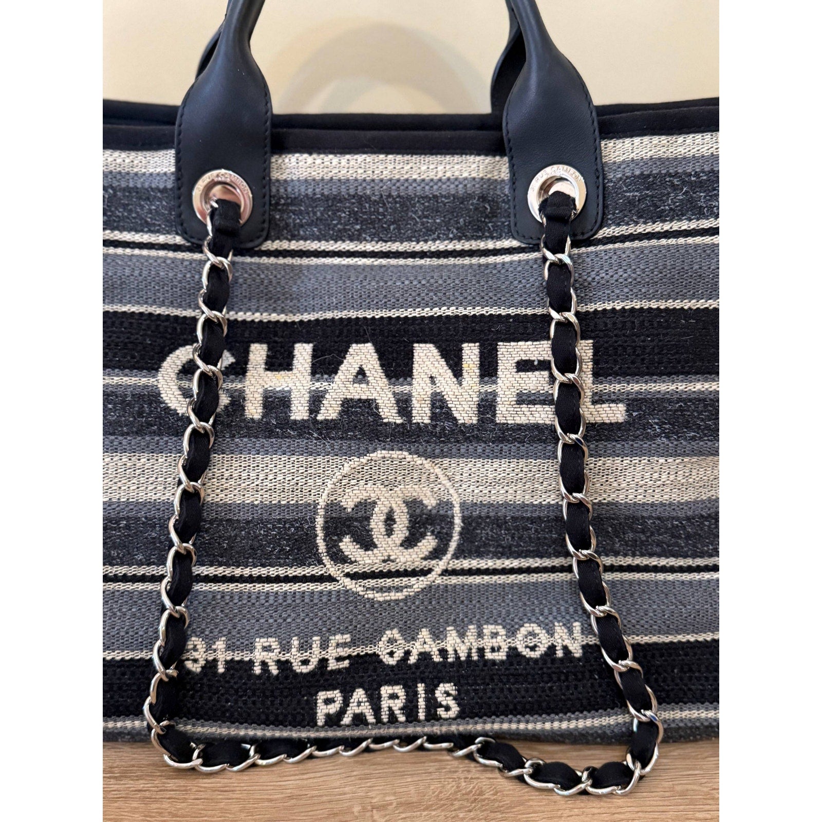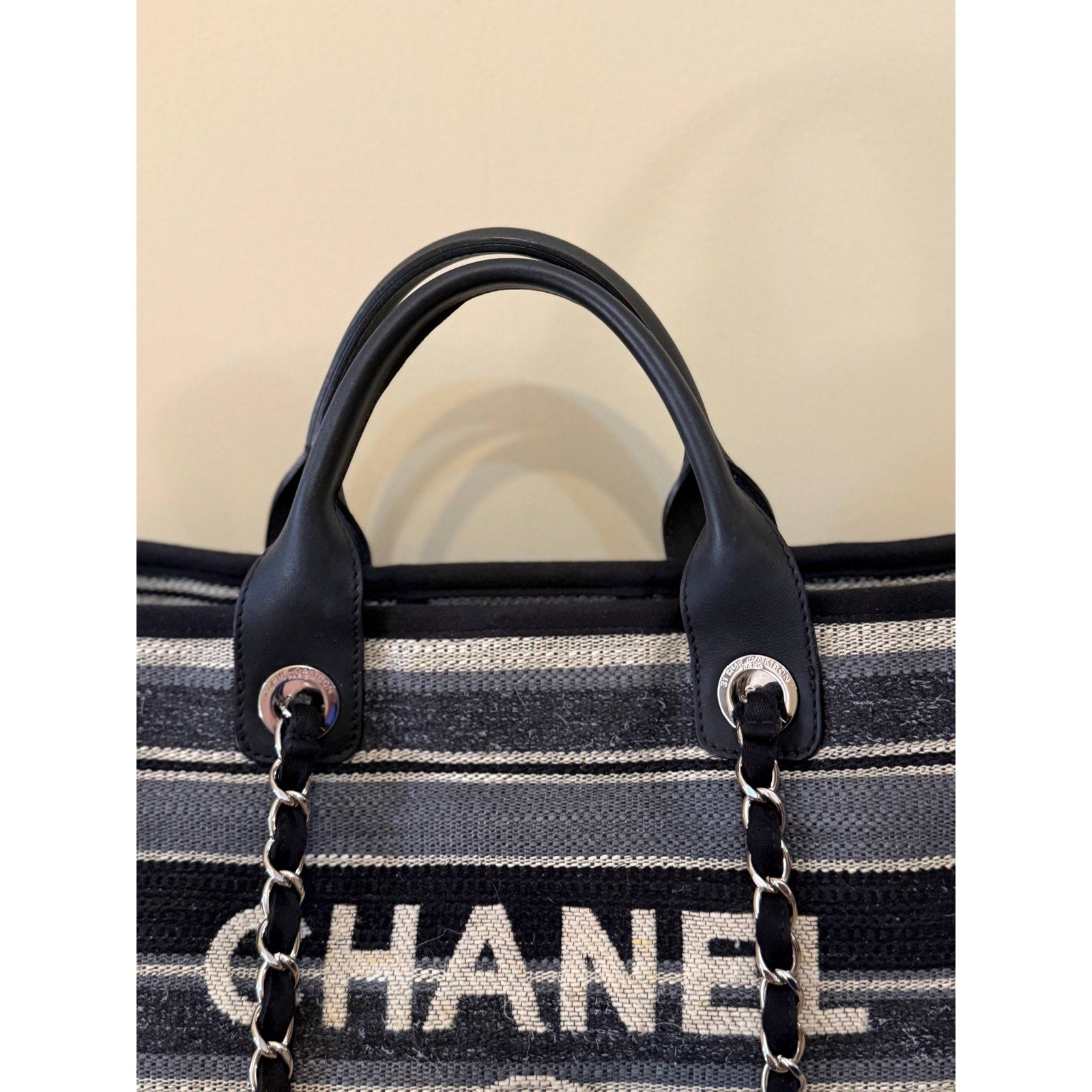 Chanel Deauville Striped Cloth Large Tote Bag Pre-owned