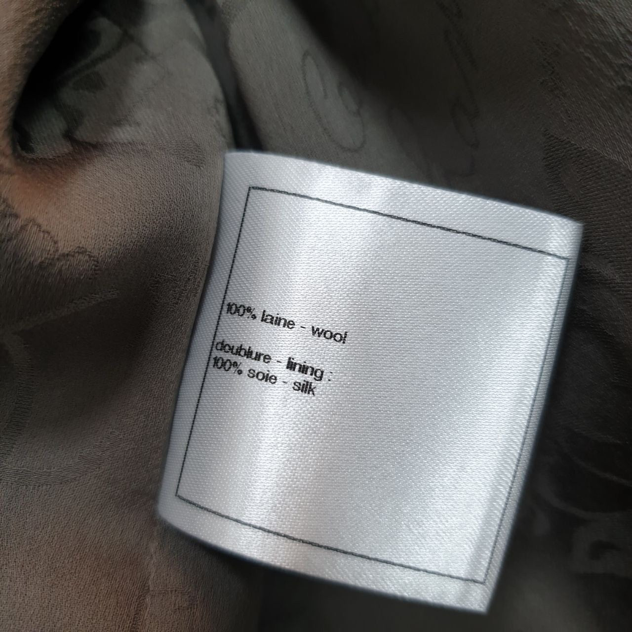 The jacket has no alterations and is made of 100% wool with a 100% silk lining. There are a few small spots, but they do not detract from the overall appearance of this stunning piece. Don't miss out on the opportunity to add this timeless classic to your wardrobe!