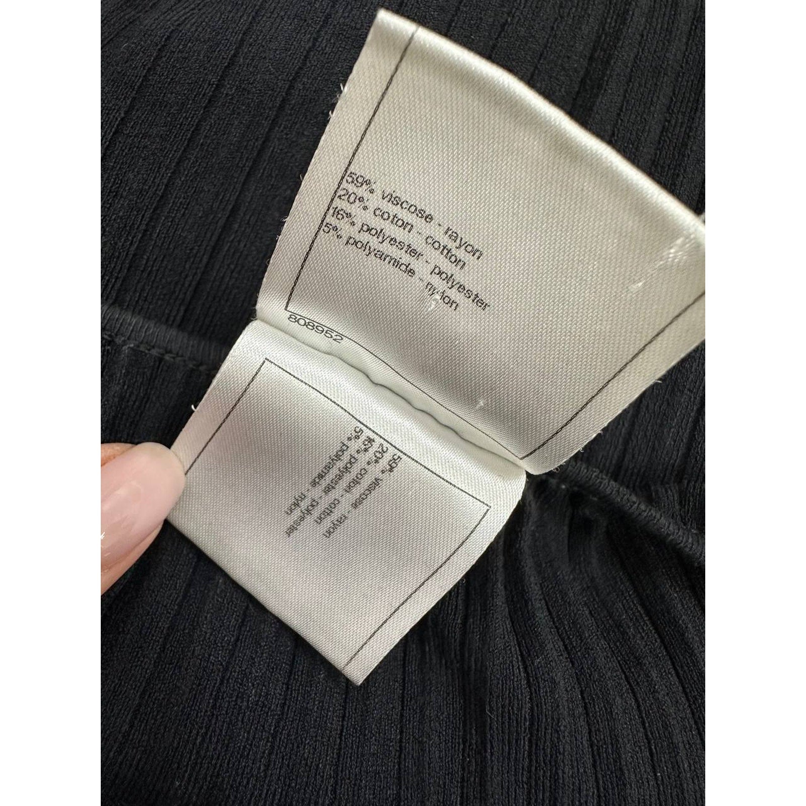 This Chanel knitted top, size 40, is a stunning blend of structure and delicate design. The flared sleeves add a touch of refined geometry, enhancing the overall look.