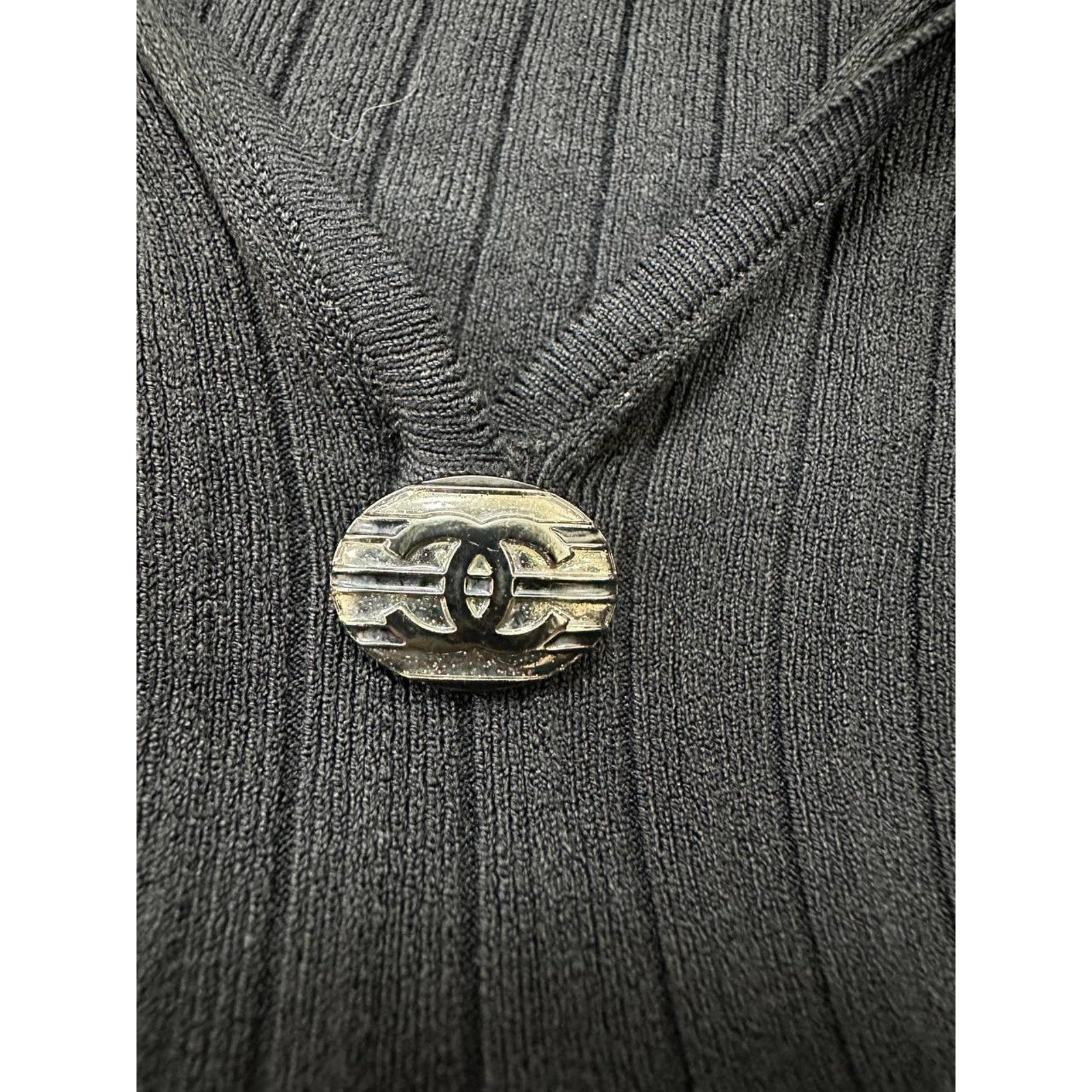 The classic black color provides a versatile and elegant base, making it an easy addition to any modern wardrobe. A signature button detail with the iconic Chanel logo adds a sophisticated finishing touch.