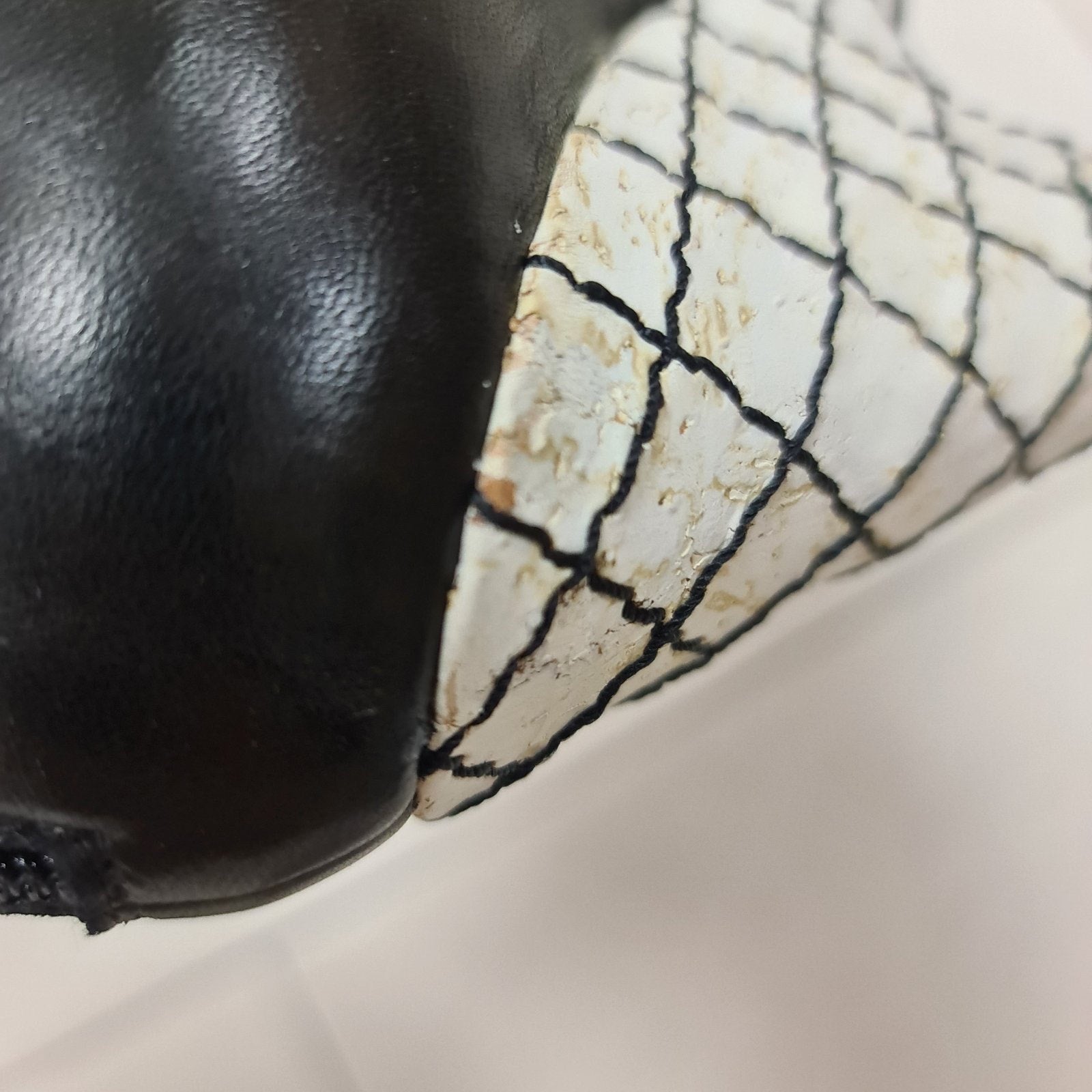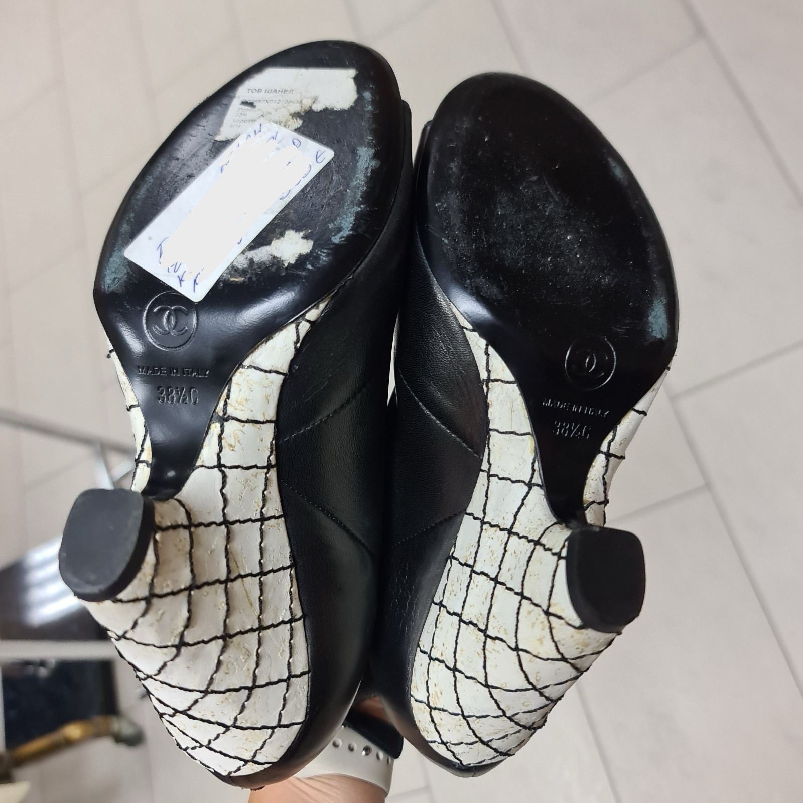 Chanel Open-Toe Leather Floral Appliqué Sculpted Wedge Heel Booties Sz. 38.5 Pre-owned