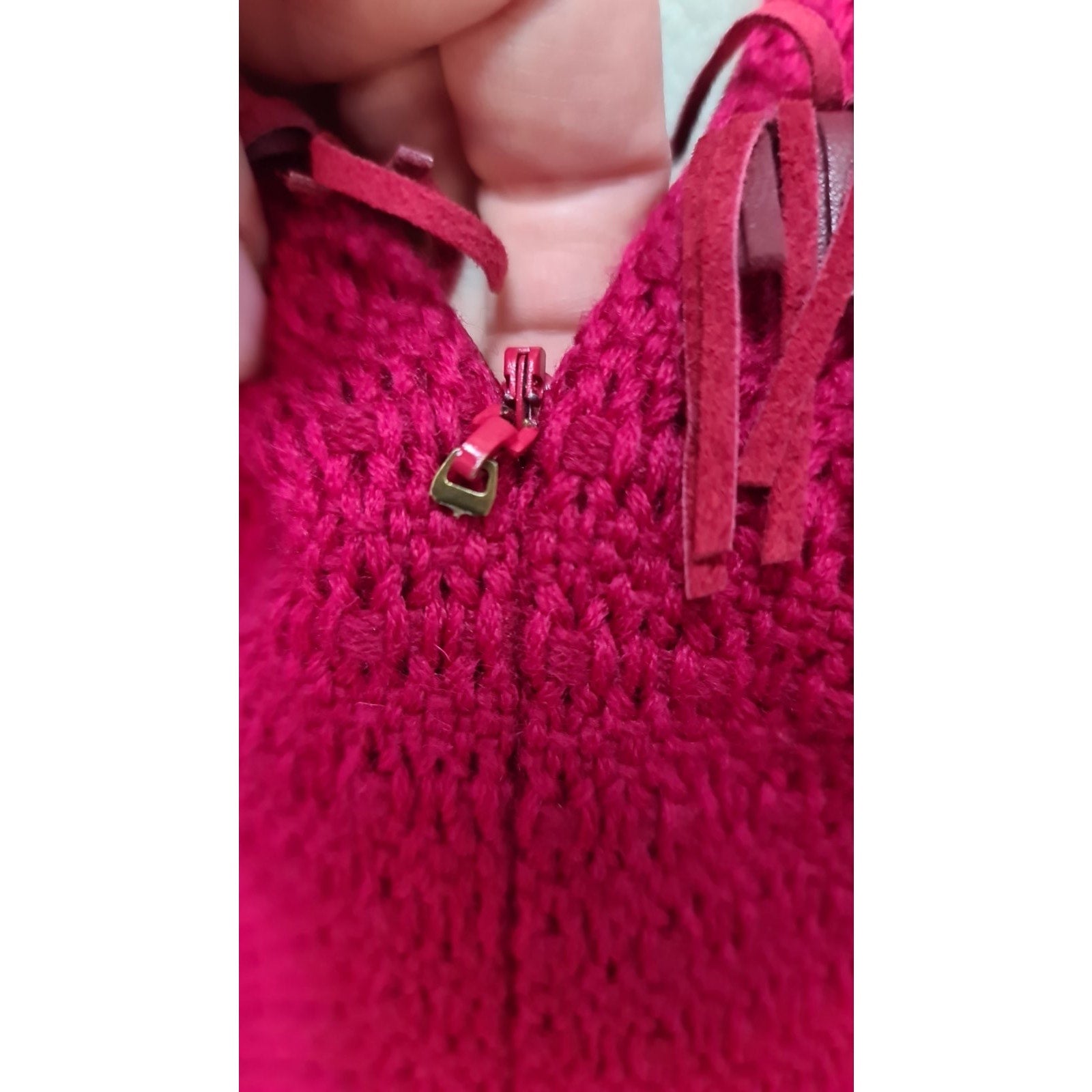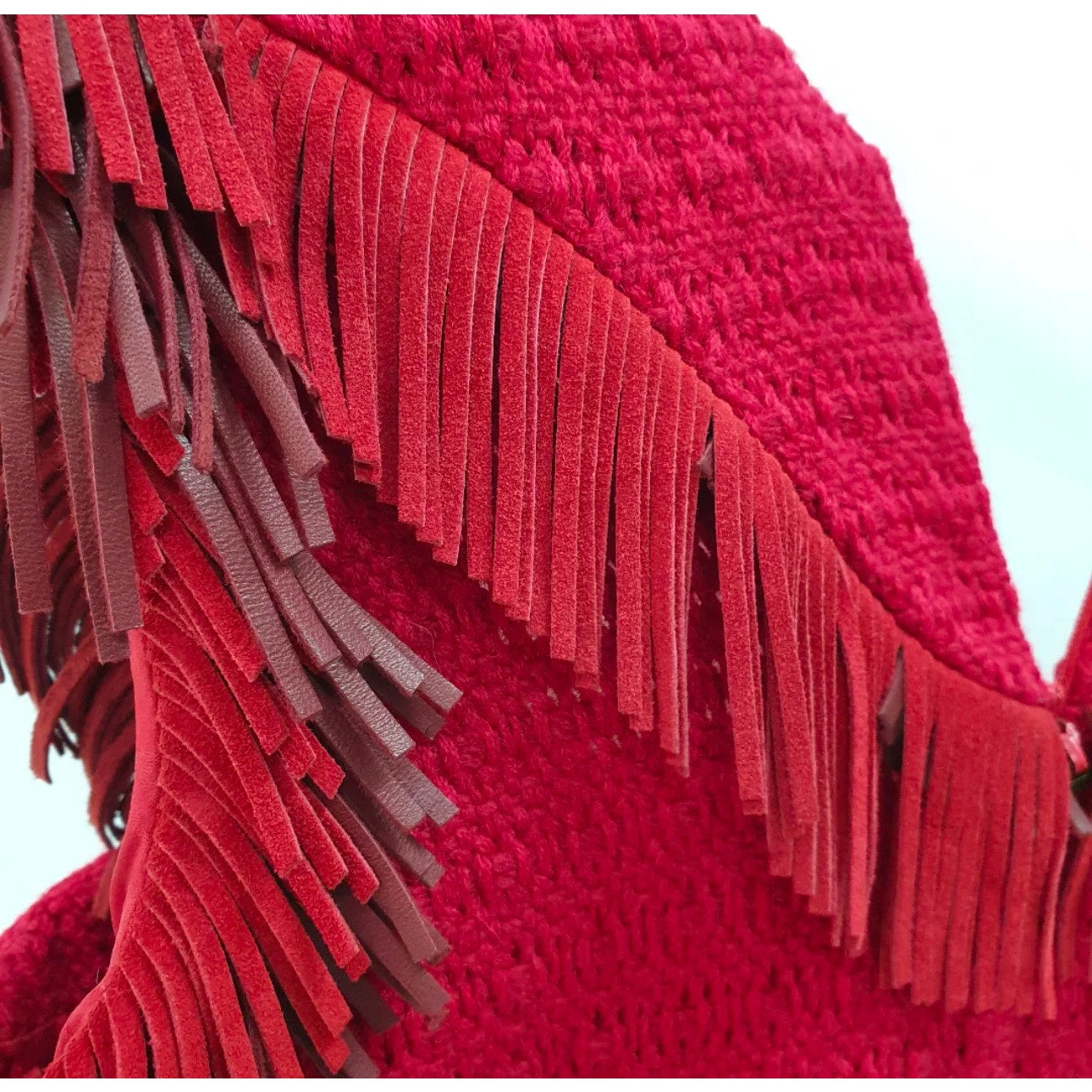 Rare Chanel runway métiers d'art pre fall 2014 Paris Dallas red tweed dress leather fringe details, star zipper closure,