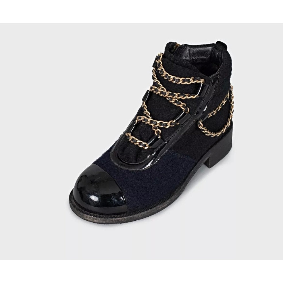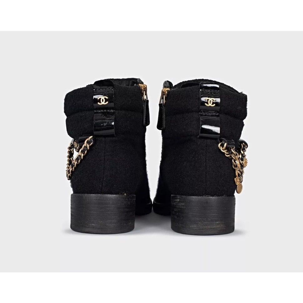 Chanel Paris-Salzburg Chain Textile Boots - Size 36.5 Pre-owned