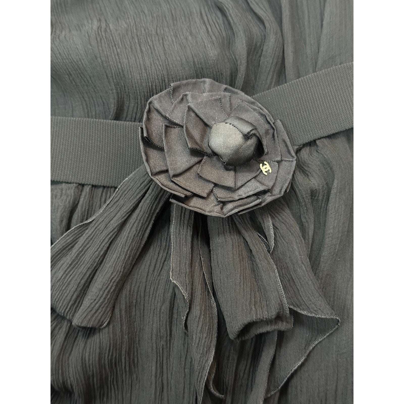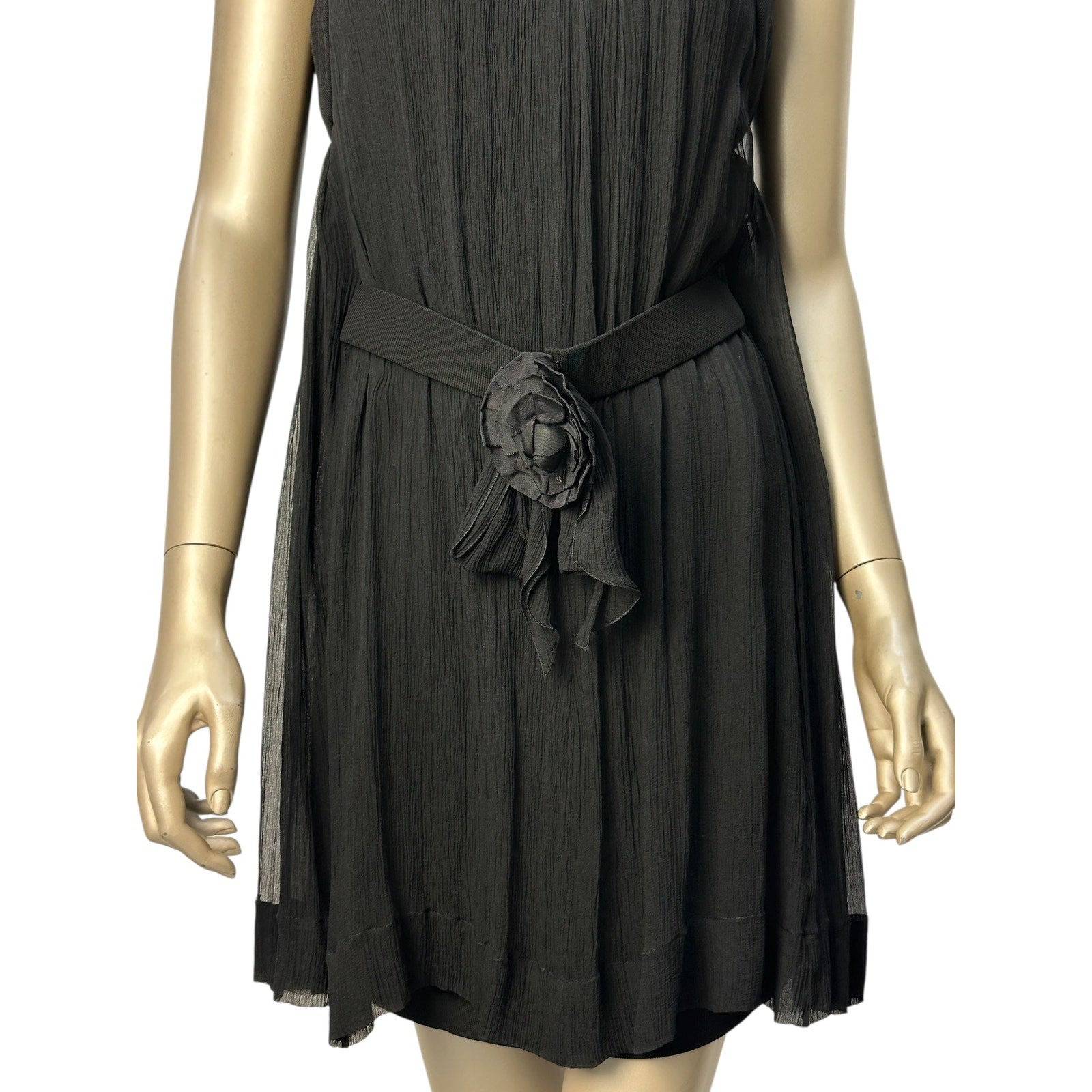 Chanel Silk Pleated Flower Belt Dress Sz.40 Pre-owned