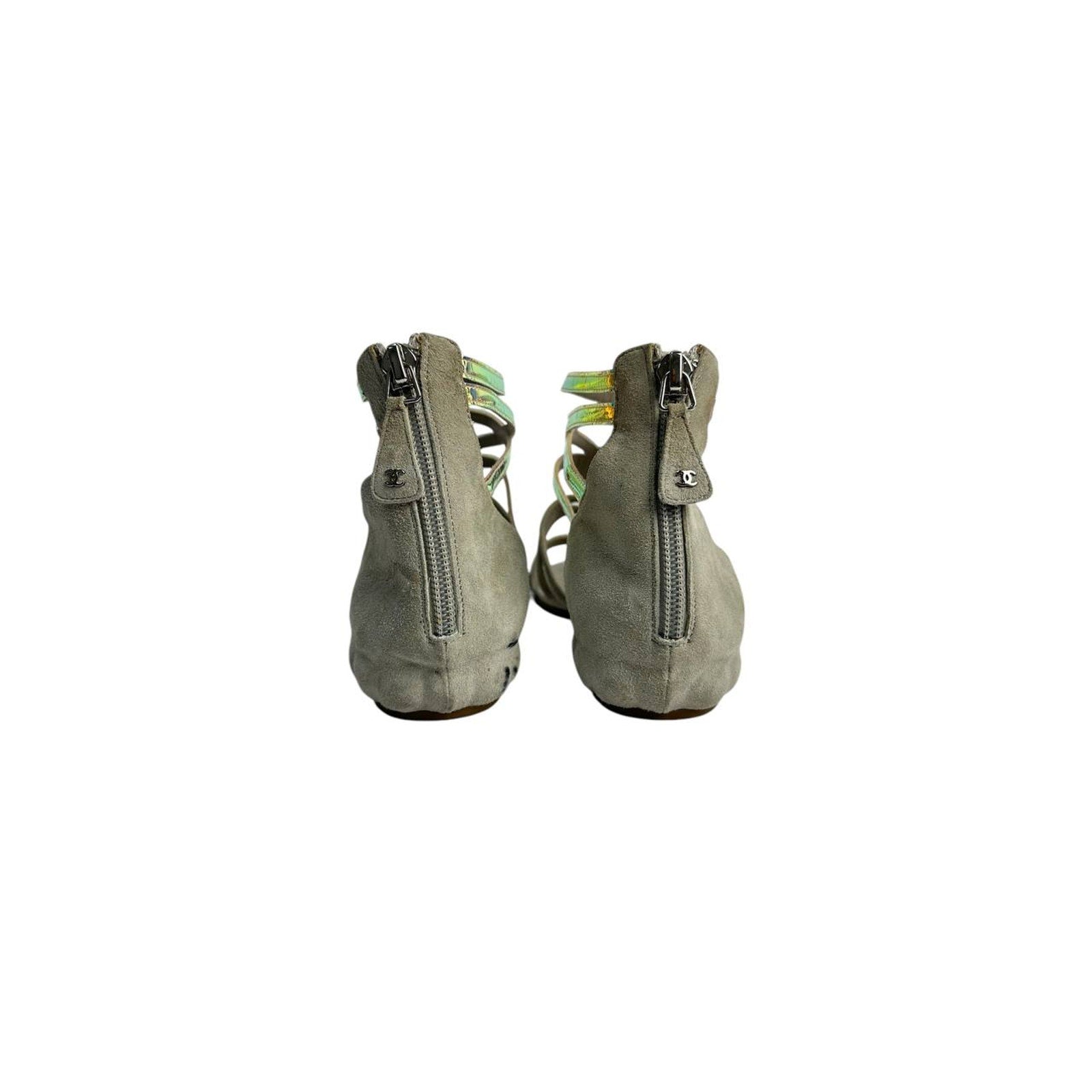 Chanel Suede Flat Multicolor Glossy Straps Sandals Sz.37 pre-owned