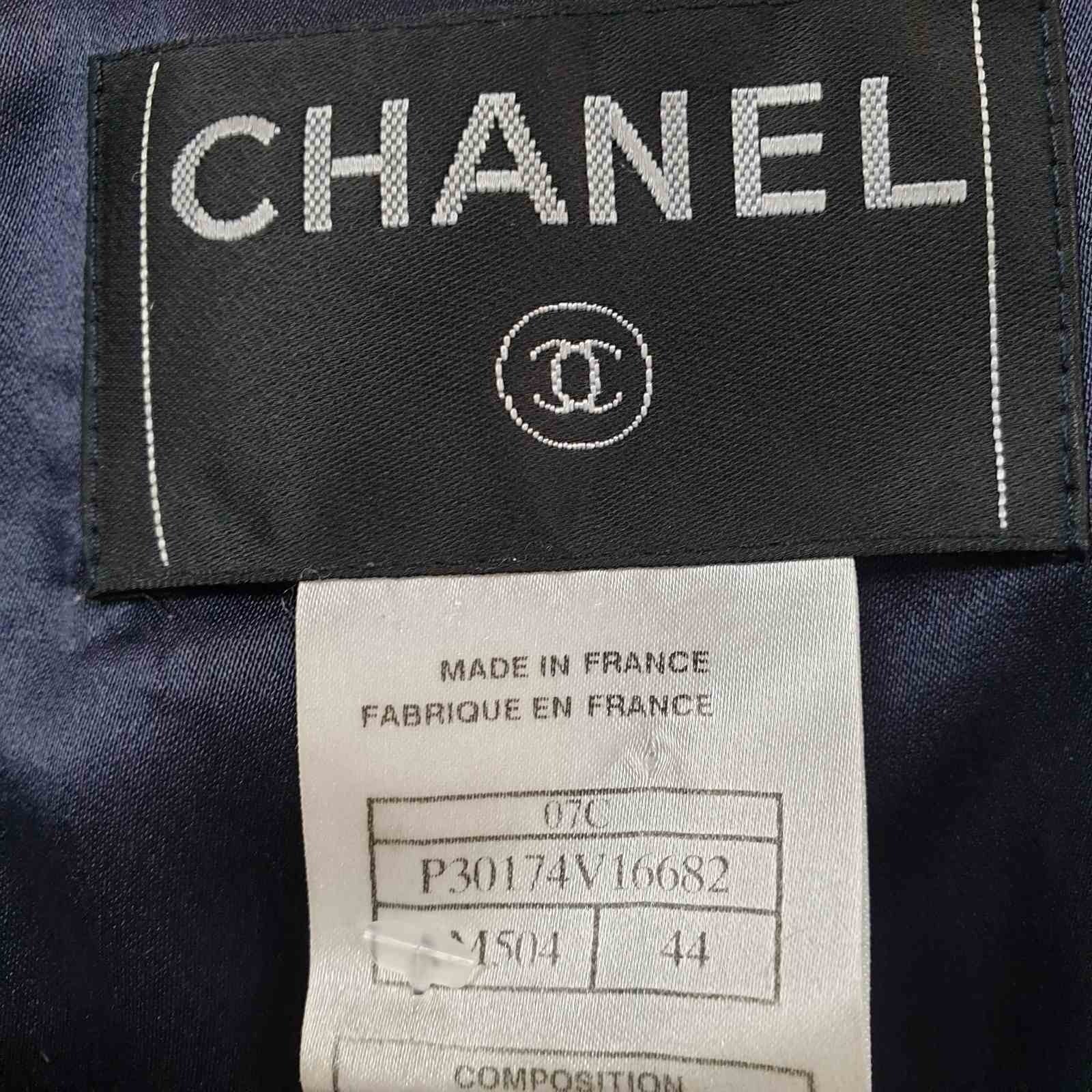 The skirt has a high waist and a refined stitching detail that creates a beautiful fit. This set can be worn together for a classic Chanel look or separately for more versatile styling options. The fabric and construction are of unparalleled quality.