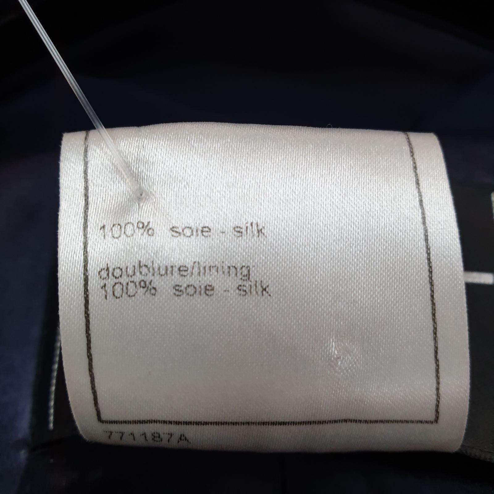 Chanel Vintage 2007 Blue Silk Logo Jacket Skirt Suit Set Sz.44 Pre-owned