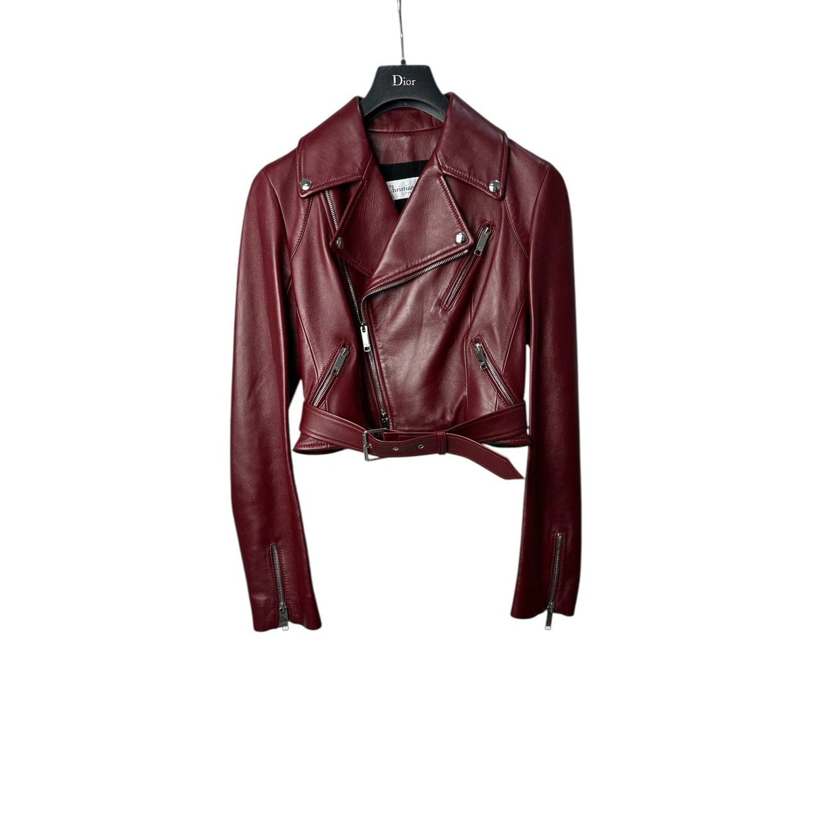 Christian Dior Burgundy Leather Biker Jacket Sz.38 Pre-owned