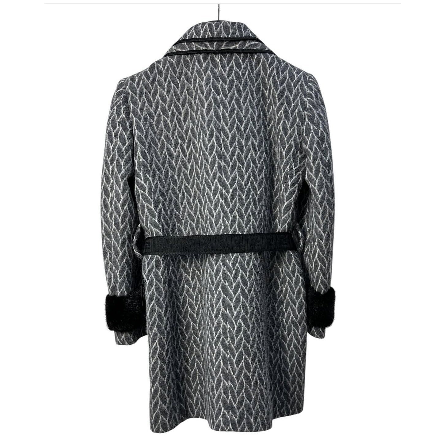 Fendi White-Grey Double-Breasted Coat with Mink Fur Sleeves & FF Belt