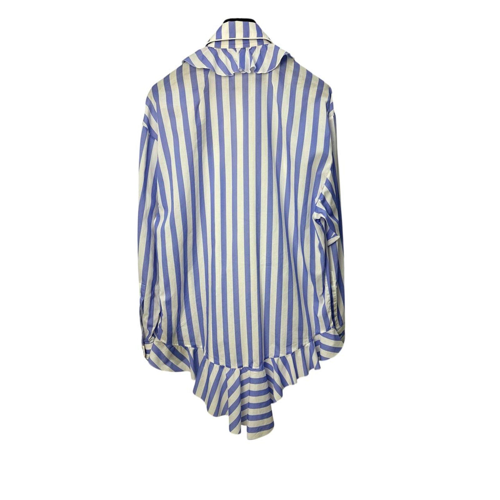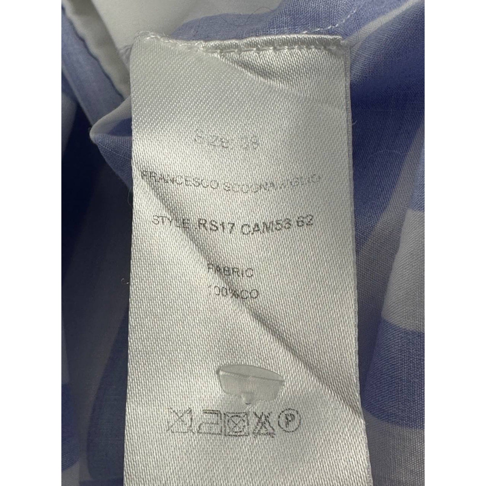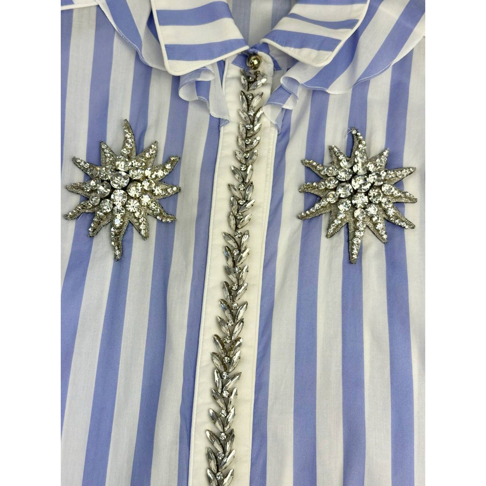 Elevate your wardrobe with this stunning Francesco Scognamiglio striped shirt! This lightweight cotton shirt features a classic white and blue stripe pattern. Beautifully accented with crystal star brooches and a delicate leaf-patterned trim along the placket, this shirt exudes effortless elegance.