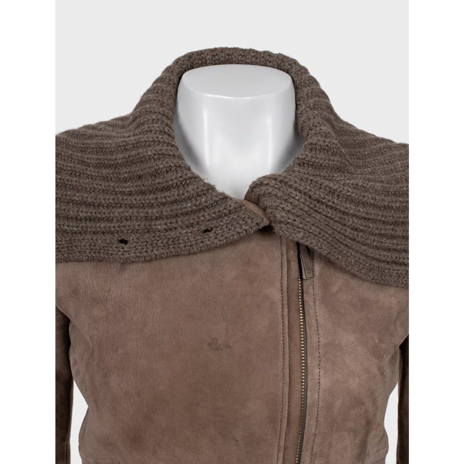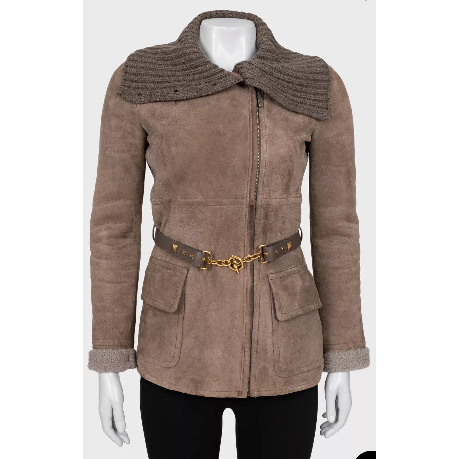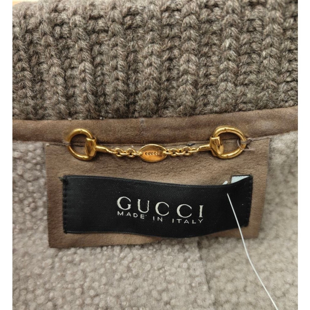 Gucci Cashmere Collar Belted Shearling Leather Jacket Sz.40 Pre-owned