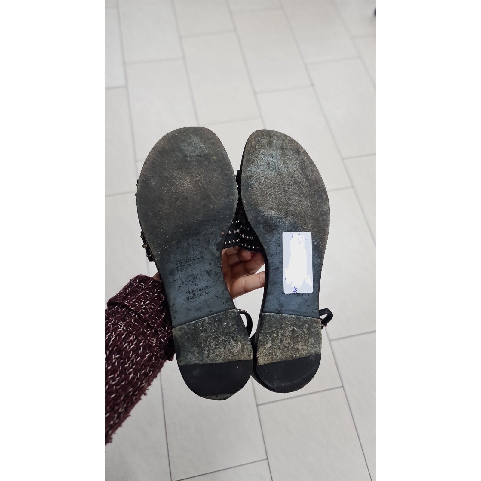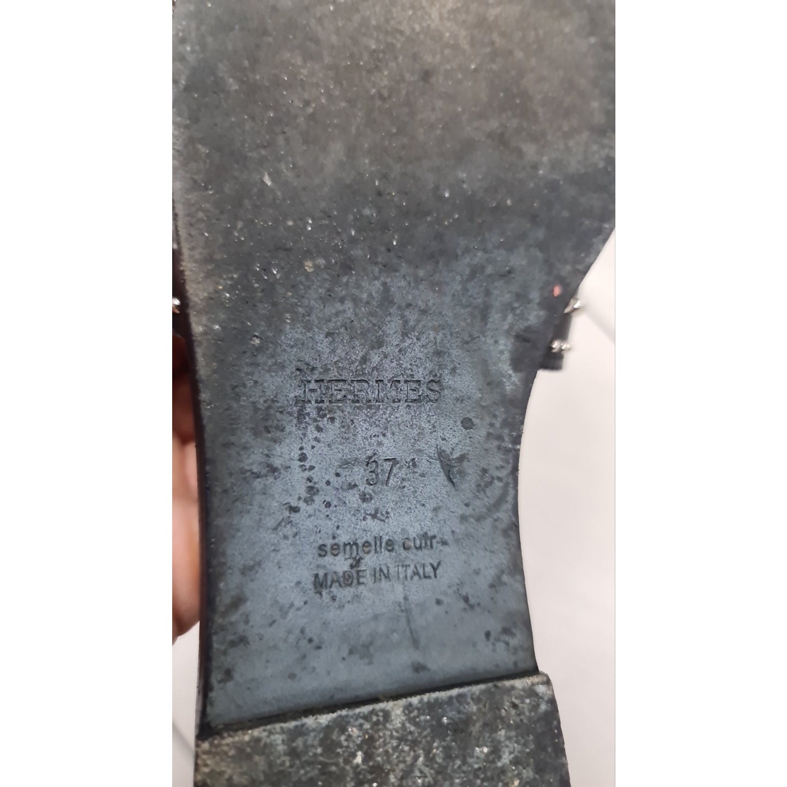 Hermes Black Leather Santorini Ankle Wrap Sandals Size 37 pre-owned