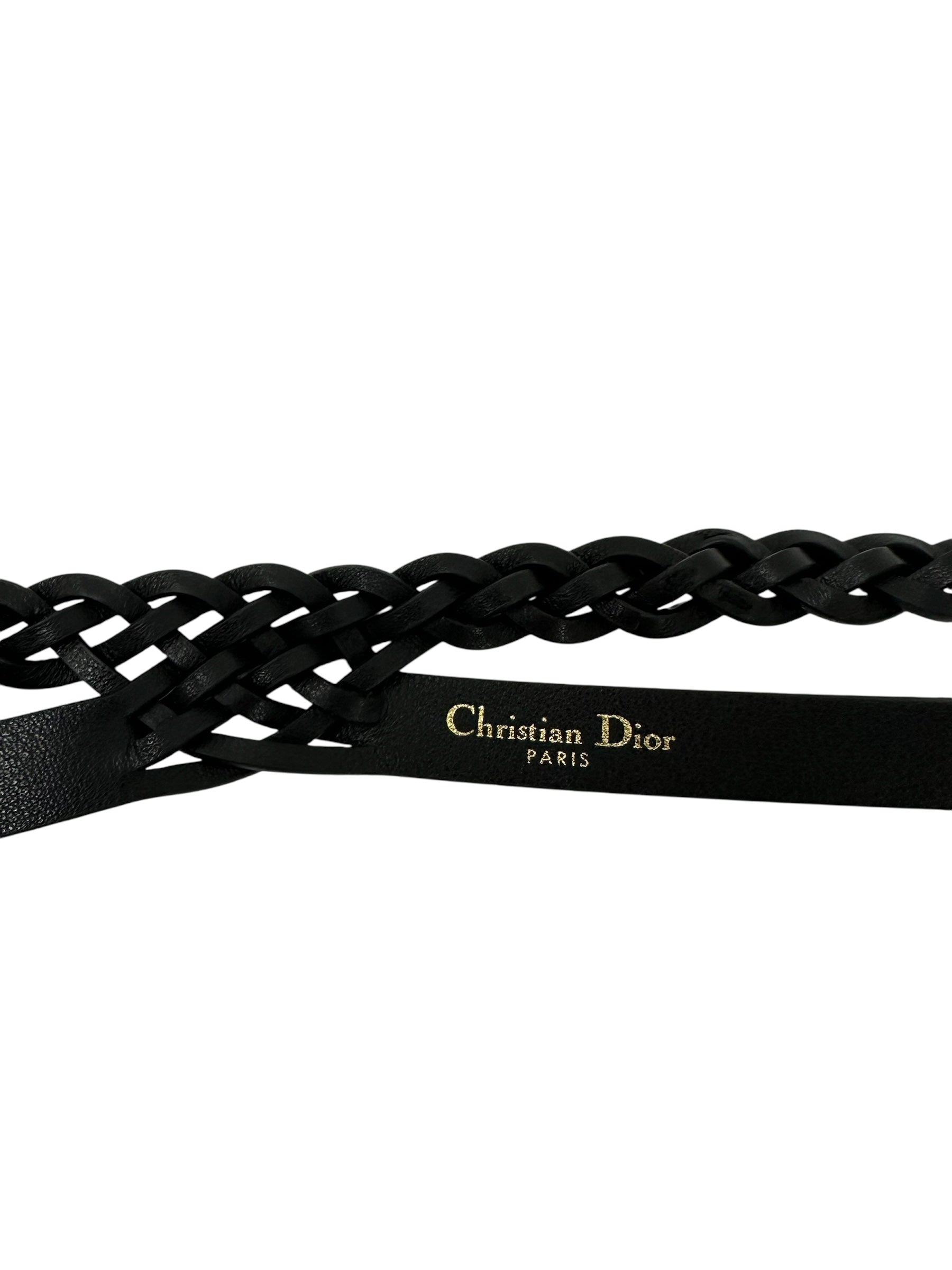 A sophisticated black leather belt featuring an elegant braided design and a bold gold buckle adds a refined accent to any outfit. The combination of timeless style and modern detailing makes it a versatile accessory that enhances individuality and completes the look.