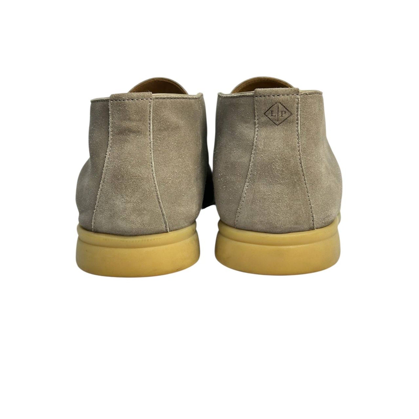 Step out in style with these Loro Piana dark beige suede loafers! These shoes feature a smooth suede texture and a versatile neutral tone that pairs effortlessly with any outfit.