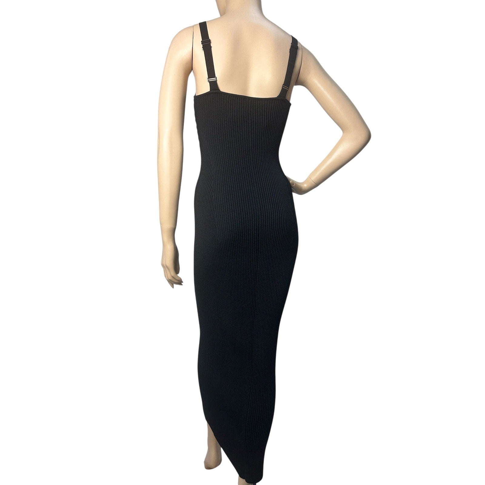 The ribbed texture subtly elongates the body, while the deep neckline adds a touch of allure. Dress it up for an unforgettable evening look, or style it casually for a chic daytime appearance.