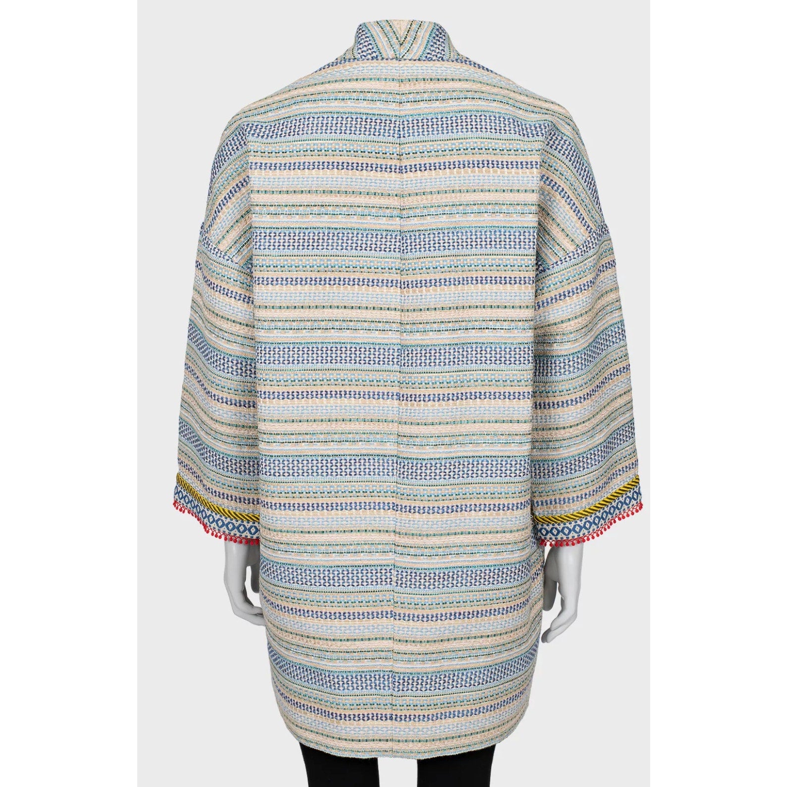 Step out in style with this elegant Max Mara Weekend coat! Crafted from a soft, luxurious mixed-fabric blend with a chic striped pattern, this coat is the perfect addition to your wardrobe.