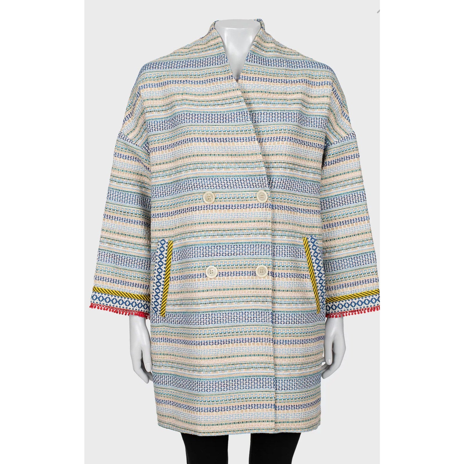 Max Mara Weekend Striped Double-Breasted Coat - Size S pre-owned