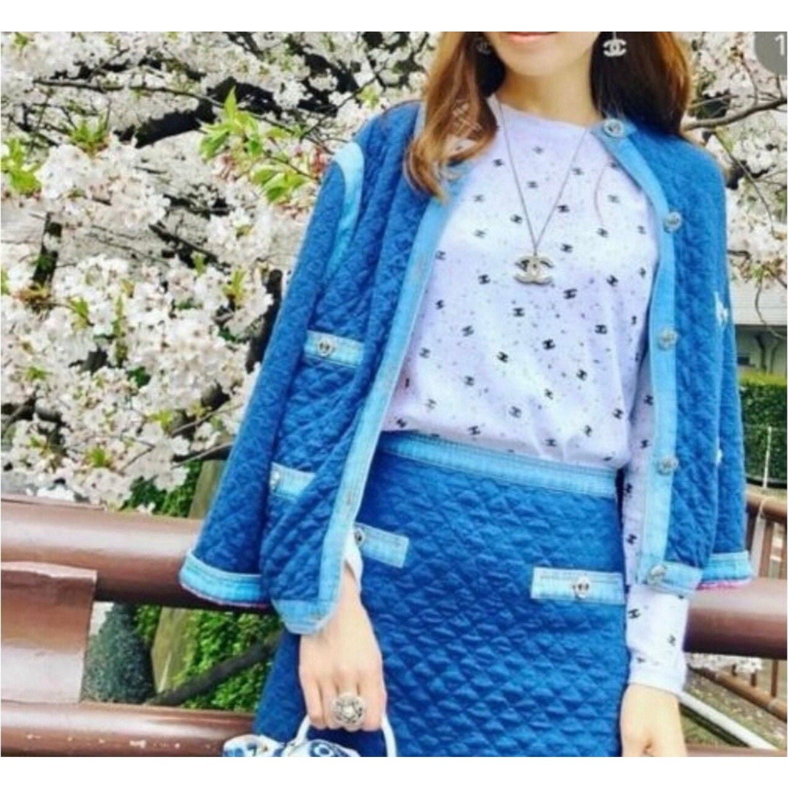 Chanel 20P Denim Jacket & Skit Suit with Crystal CC Buttons