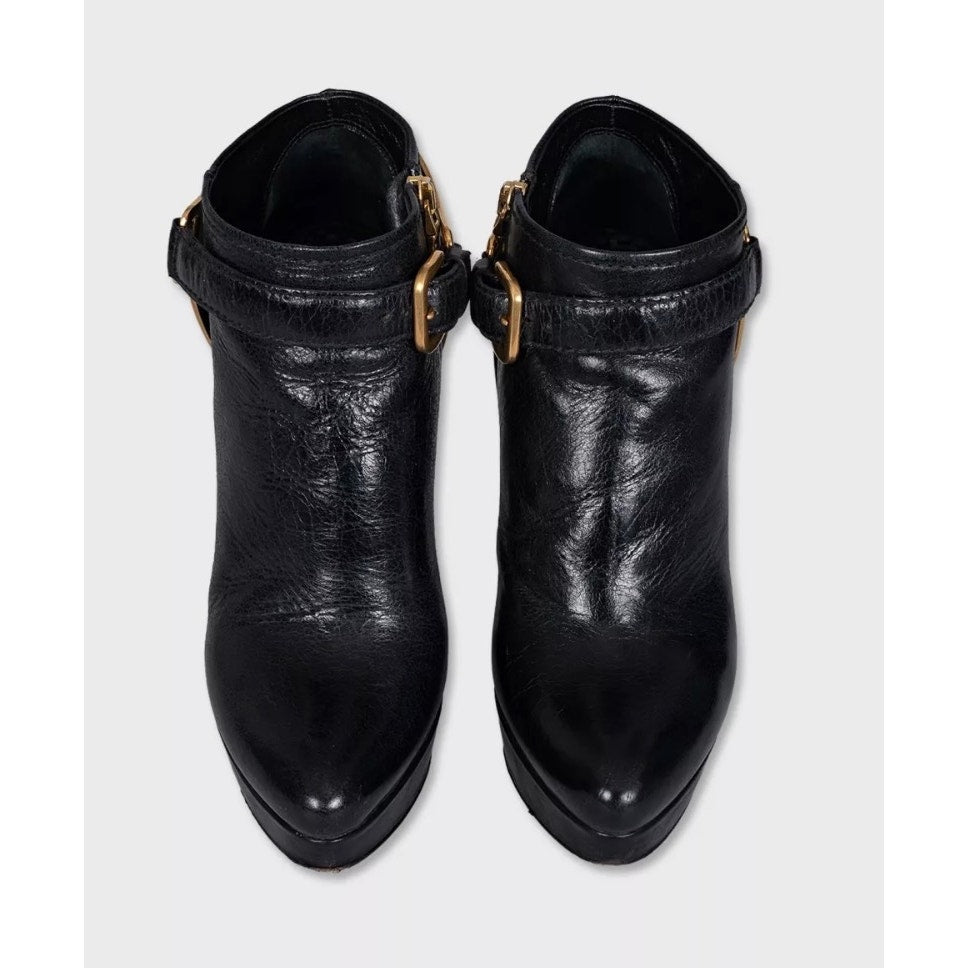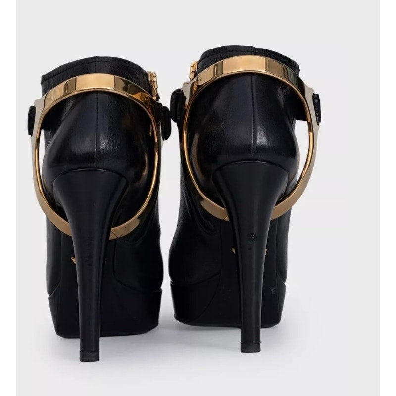 Prada Black Leather Ankle Boots with Gold Hardware, Size 36 Pre-owned
