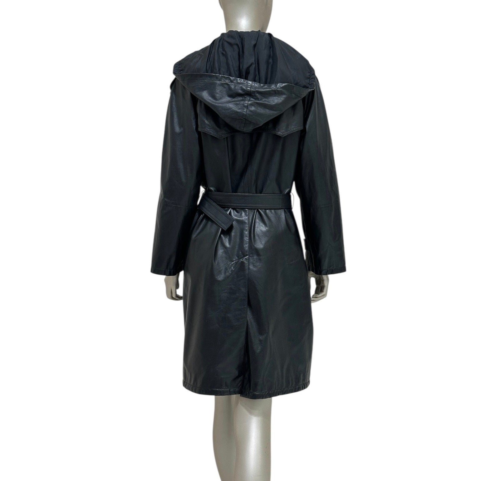Prada Black Leather Trench Coat with Detachable Hood - IT 40 Pre-owned