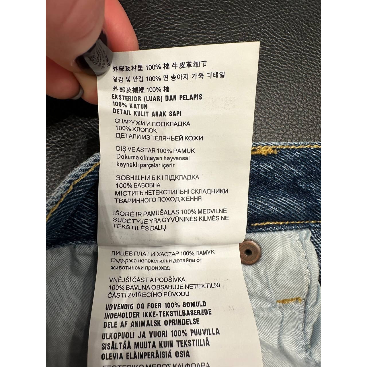 Details: Used finish emphasizing denim texture, vintage allure; relaxed fit with five pockets; archive logo printed on label