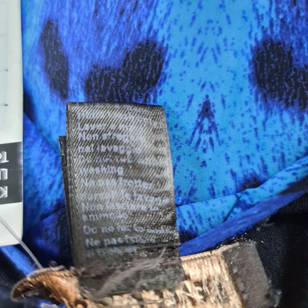 Make a statement with this striking Roberto Cavalli one-shoulder swimsuit, featuring a bold blue and black leopard print.