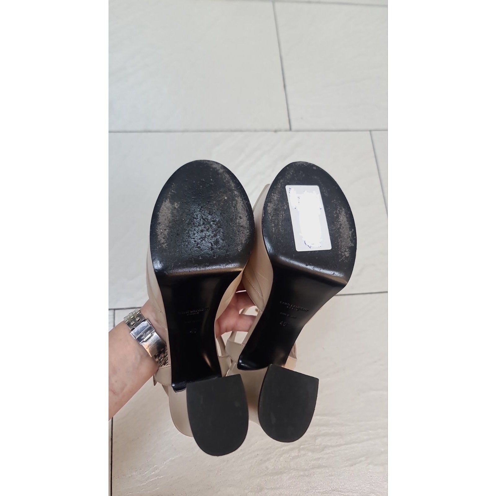 Saint Laurent Beige Leather Candy Bow Platform Sandals Sz 40 Pre-owned