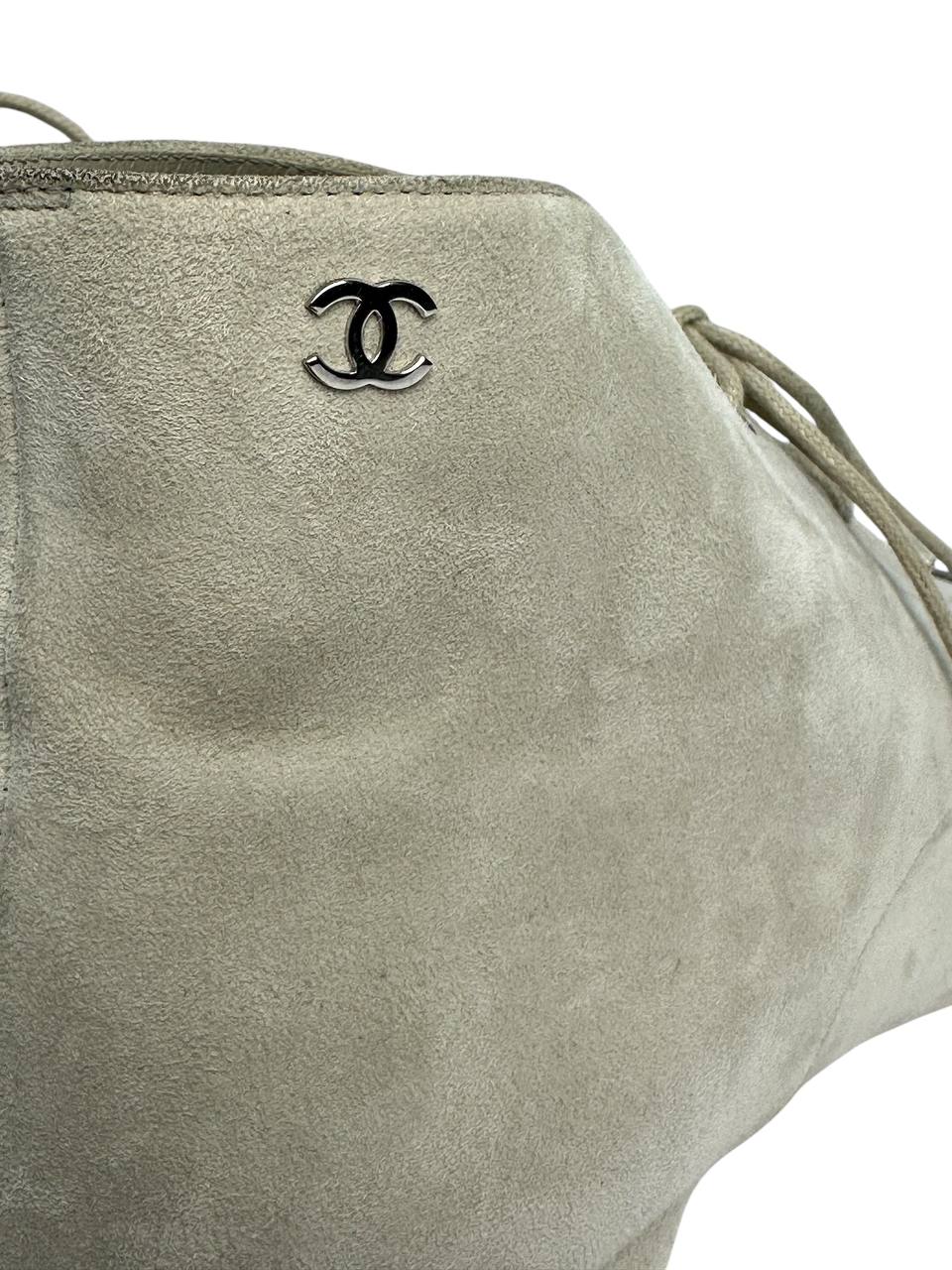 Minimalist suede ankle boots with a contrasting black toe and refined lace-up design. The soft gray tone makes them incredibly versatile, while the signature logo discreetly signals timeless luxury. More than just shoes — they’re a refined base for building any stylish outfit.