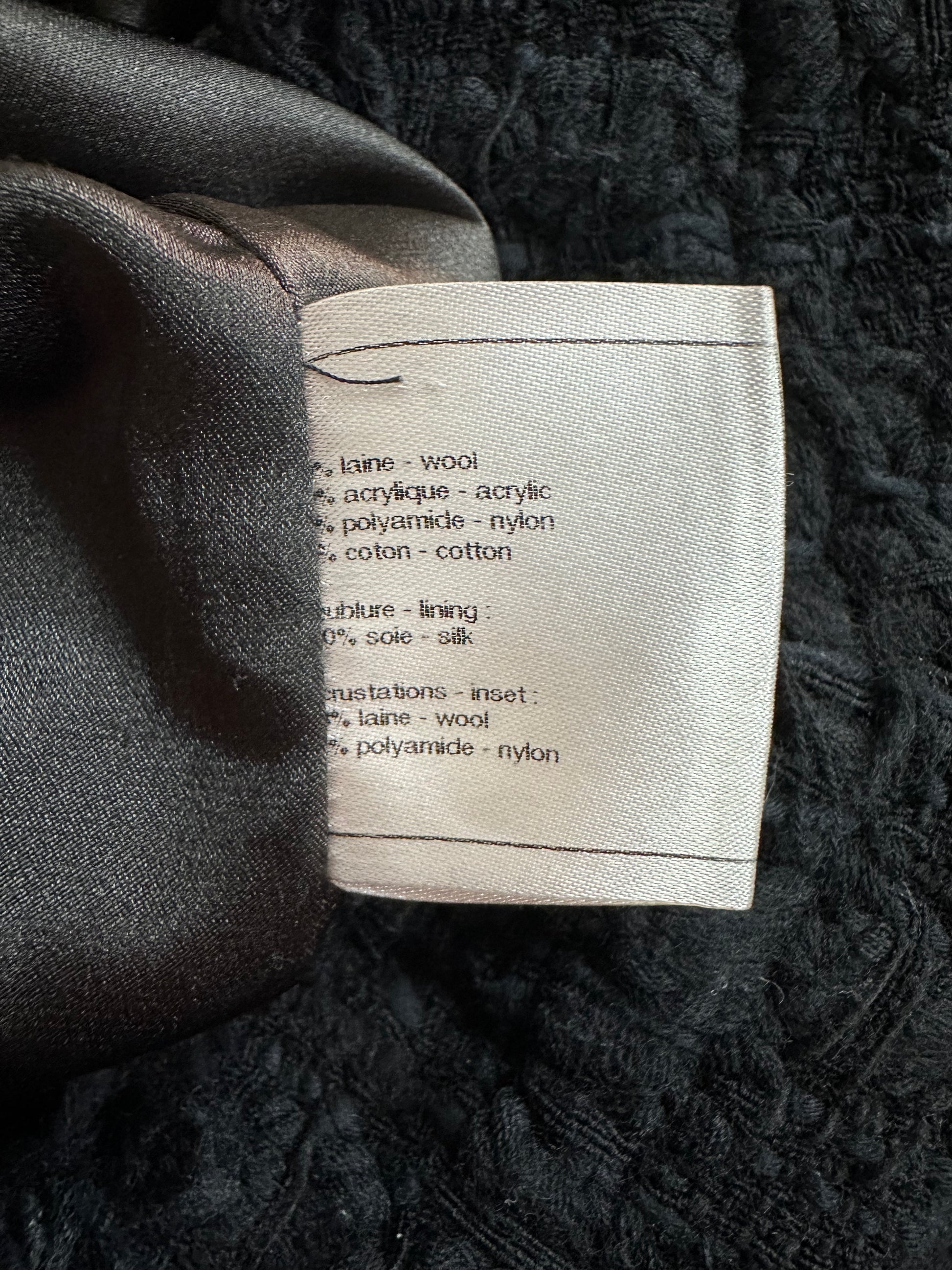 Tweed texture, raw-edge finish, and signature clasp — this piece merges classic elegance with high-fashion codes. The dense structure holds its shape perfectly, while the cropped cut visually elongates the legs. Contrasting insets add a touch of modern edge. Sophisticated and rich in design, this skirt transitions effortlessly from office to evening.