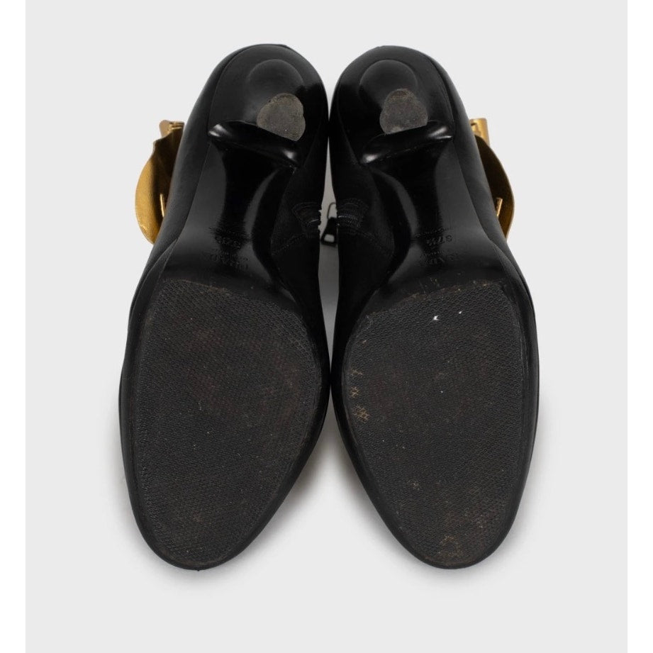Vintage Prada Black Leather Gold Detail Heels Sz.37.5Pre-owned