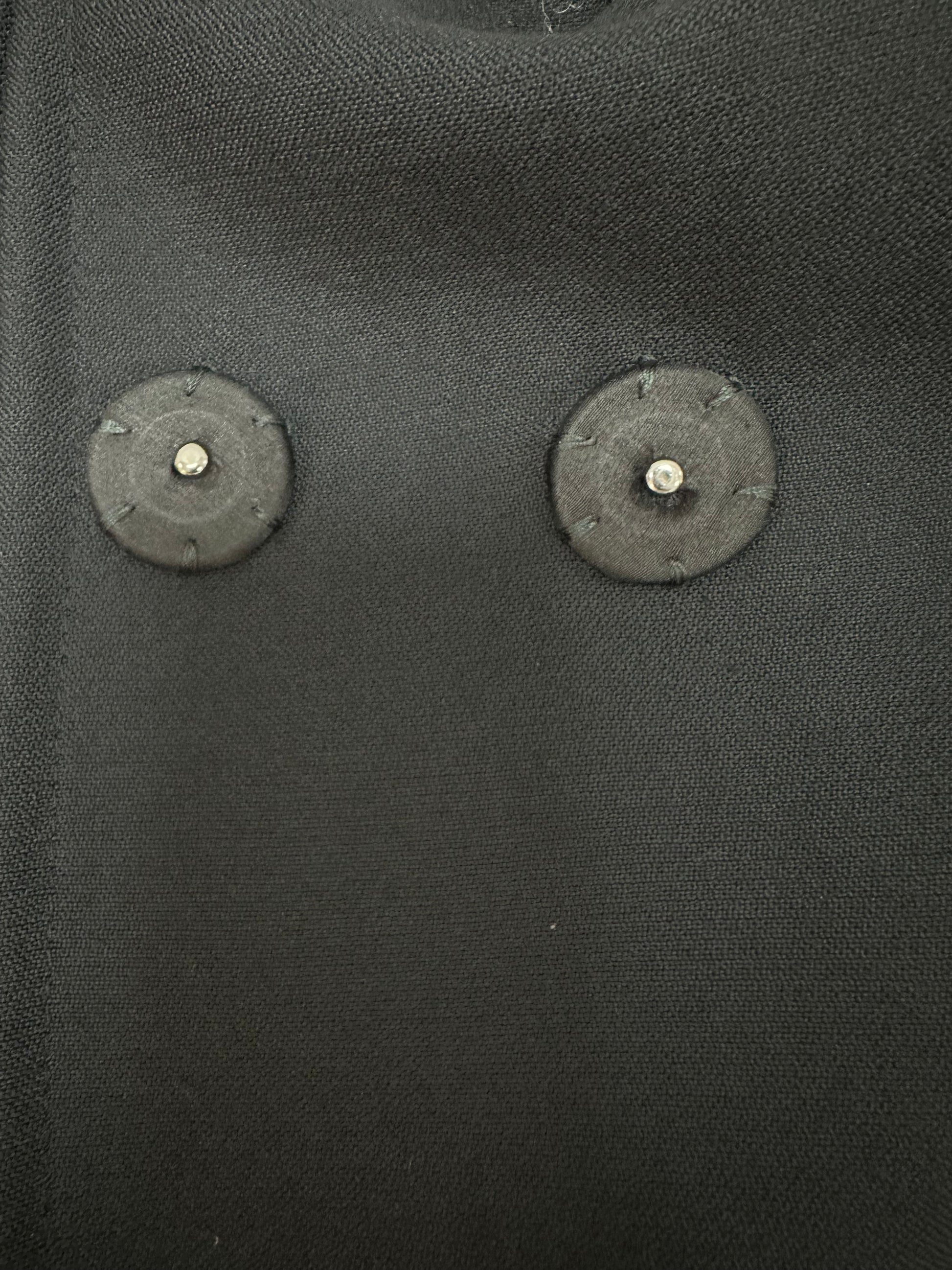 A refined black midi coat with a classic collar and flared sleeves creates a sophisticated silhouette and highlights timeless elegance. The minimalist cut combined with premium fabric makes this piece a versatile wardrobe investment that remains relevant season after season.