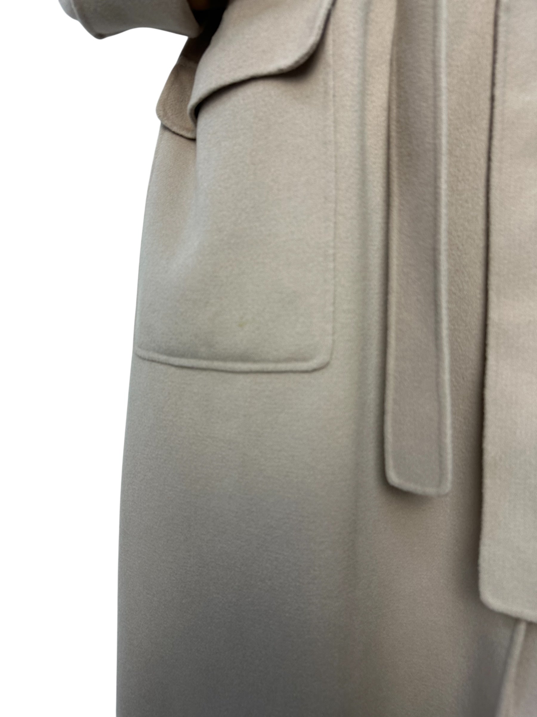 A sophisticated midi coat with hood and belt, designed in a minimalist silhouette for timeless versatility. The straight cut, patch pockets, and soft wool texture give it a refined yet practical appeal. The pure silk lining enhances comfort and highlights its premium quality. A wardrobe investment that remains relevant season after season.